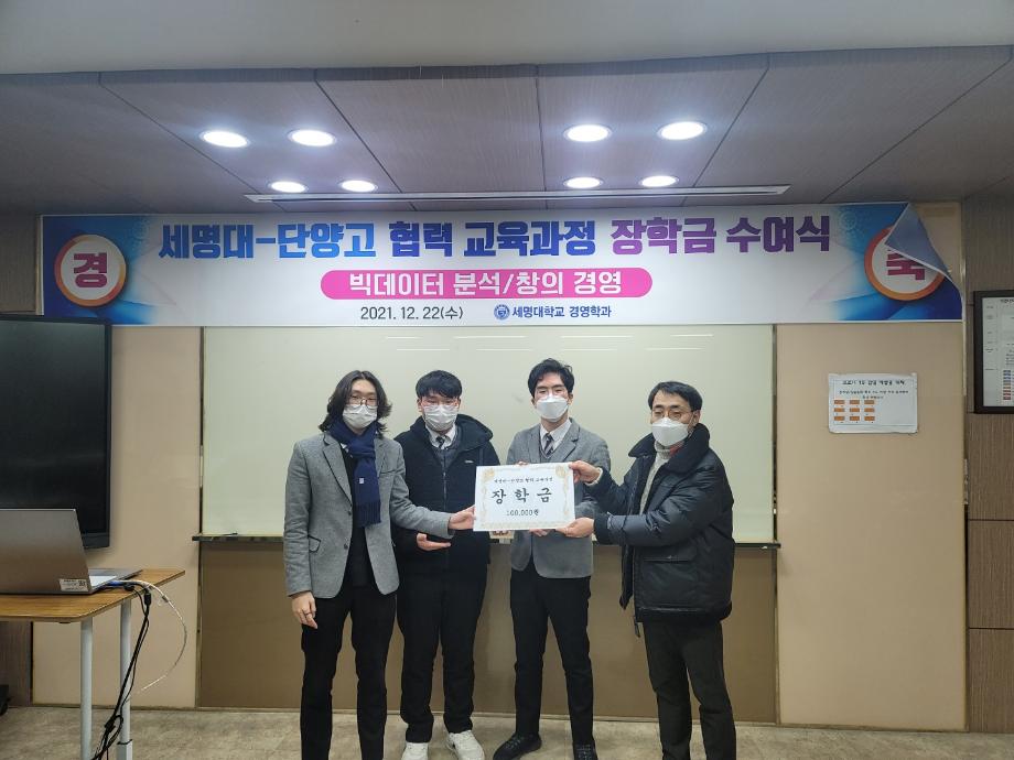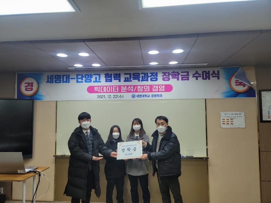 세명대학교 경영학과는 단양고등학교와 2021년 2학기 고등학교 협력교육과정을 개설하여 진행하였다. 협력교육과정은 창의경영과 빅데이터 분석 2개 강좌가 개설되었다. 2학기는 9월 8일부터 12월 22일까지 열 한차례 강의와 팀별 발표가 진행되었다.