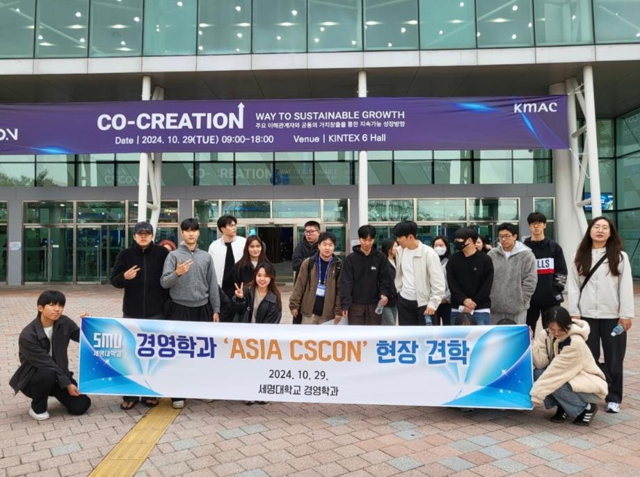 세명대학교(권동현 총장) 경영학과 1학년 학생들이 10월 29일(화)에 고양시 킨텍스에서 개최된 한국능률협회컨설팅(KMAC) 주관 AISIA CSCON에 참가하였다. 개막식에서는 포스텍 김성근 총장의 ‘과학기술문명과 창의성의 시대 기업이 창의적 인재를 키우려면’이라는 주제 기조강연과 이명한 에그이즈커밍 대표의 ‘대세를 만드는 알찬 컨텐츠, 익숙함을 조합하라’라는 특강을 들었다. 참여 학생들은 두 강연자의 특강으로 발명도 중요하지만 기본의 축적에 의한 발견의 소중함을 터득하게 되었다. 오후 세션에서는 18개 트랙의 기업경영 콘텐츠를 접할 수 있었고 세 개의 특별세션에 참여할 수 있었다. 이 컨퍼런스에 참여한 경영학과 정윤진 학생은 “자주 이런 행사에서 참여하여 다양한 경험을 했으면 좋겠다.”라고 참가 소감을 밝혔다.