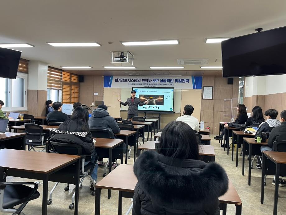 본문 시작 홈으로 커뮤니티 학과소개 학생진로 교과과정 커뮤니티 학과 SNS 홈페이지가이드 학과 갤러리 공지사항 대학원 학과 갤러리 학과 이야기 동아리 학생회 학과 갤러리 페이스북 트위터 프린트 [경영학과] ERP 성공적인 취업 전략 특강 경영학과 1805 2025-02-14 더존 생산성본부 ERP 전문 강사 김진우 교수님께서 회계정보시스템의 변화와 ERP 성공적인 취업 전략 특강을 진행하셨습니다. 취업과 진로에 많은 도움이 되는 특강으로, 참석한 학생들 모두 유익한 시간이었다고 합니다. 목록 이전[경영학과] 2024학년도 대학원 학위수여식 다음 [경영학과] 2024학년도 경영학과 학위수여식 담당부서 : 경영학과 담당자 : - 연락처 : 043-649-1766 최종수정일 : 2024-10-26 만족도조사 만족도 조사 이 페이지에서 제공하는 정보에 대하여 만족하시나요? 매우만족 만족 보통 불만족 매우불만족