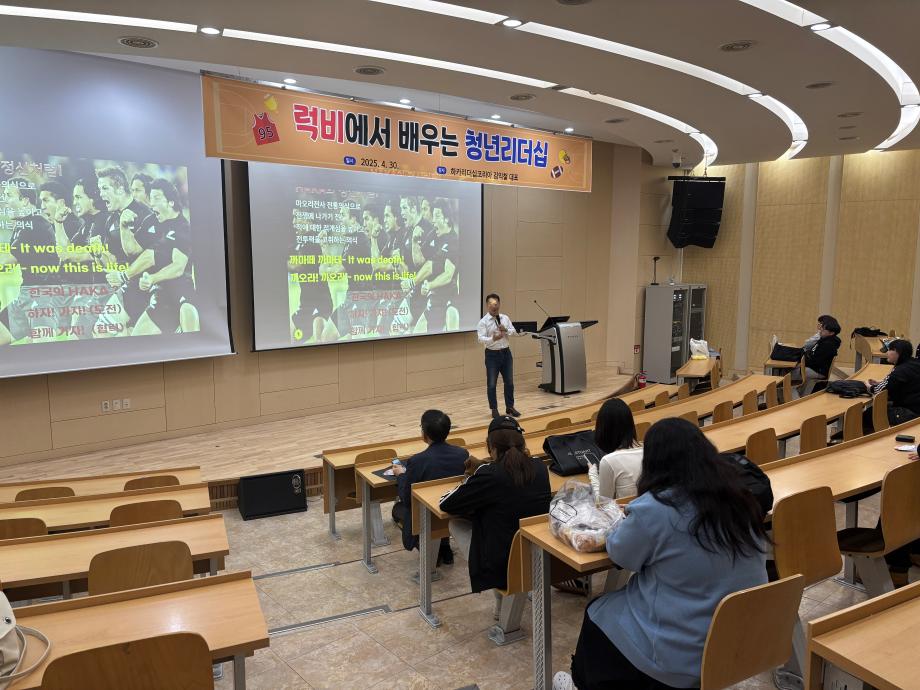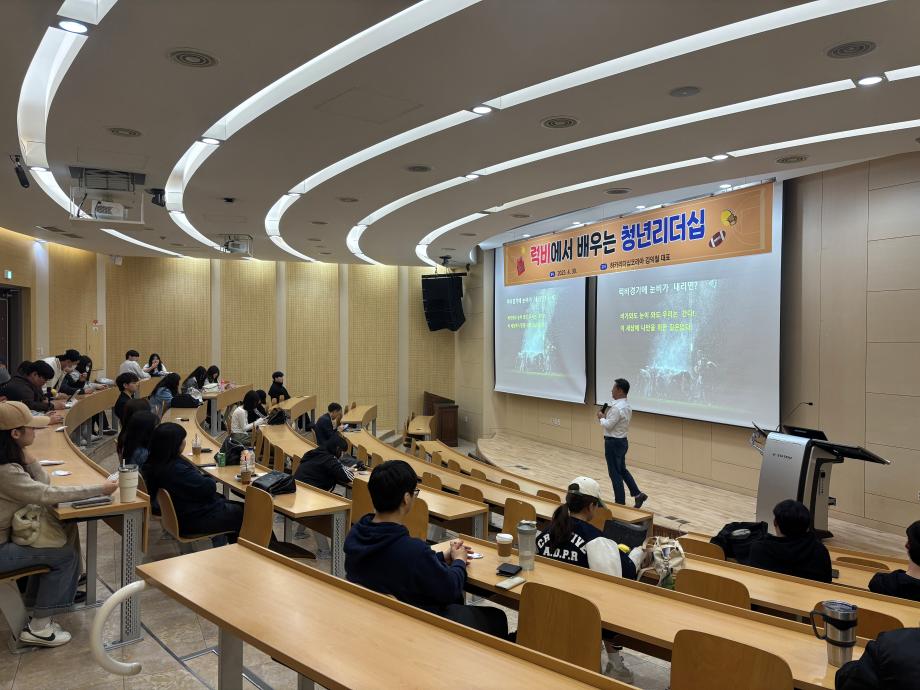 본문 시작 홈으로 커뮤니티 학과소개 학생진로 교과과정 커뮤니티 학과 SNS 홈페이지가이드 학과 갤러리 공지사항 대학원 학과 갤러리 학과 이야기 동아리 학생회 학과 갤러리 페이스북 트위터 프린트 [경영학과] 김익철 하카리더십코리아 대표 학술특강 경영학과 1604 2025-04-30 4월 30일에 [김익철 하카리더십코리아 대표의 “럭비에서 배우는 청년 리더십”] 경영학술특강이 진행되었습니다. 참여한 학생들에게 동기부여를 전하는 뜻깊은 시간이었습니다. 목록 이전[일반대학원 경영학과] 논문토론회 개최 다음 [경영학과] AI를 활용한 경영학과 홍보 콘텐츠 공모전 담당부서 : 경영학과 담당자 : - 연락처 : 043-649-1766 최종수정일 : 2024-10-26 만족도조사 만족도 조사 이 페이지에서 제공하는 정보에 대하여 만족하시나요? 매우만족 만족 보통 불만족 매우불만족