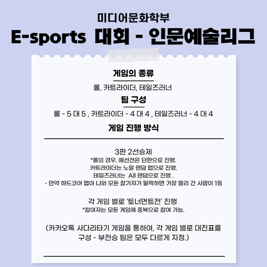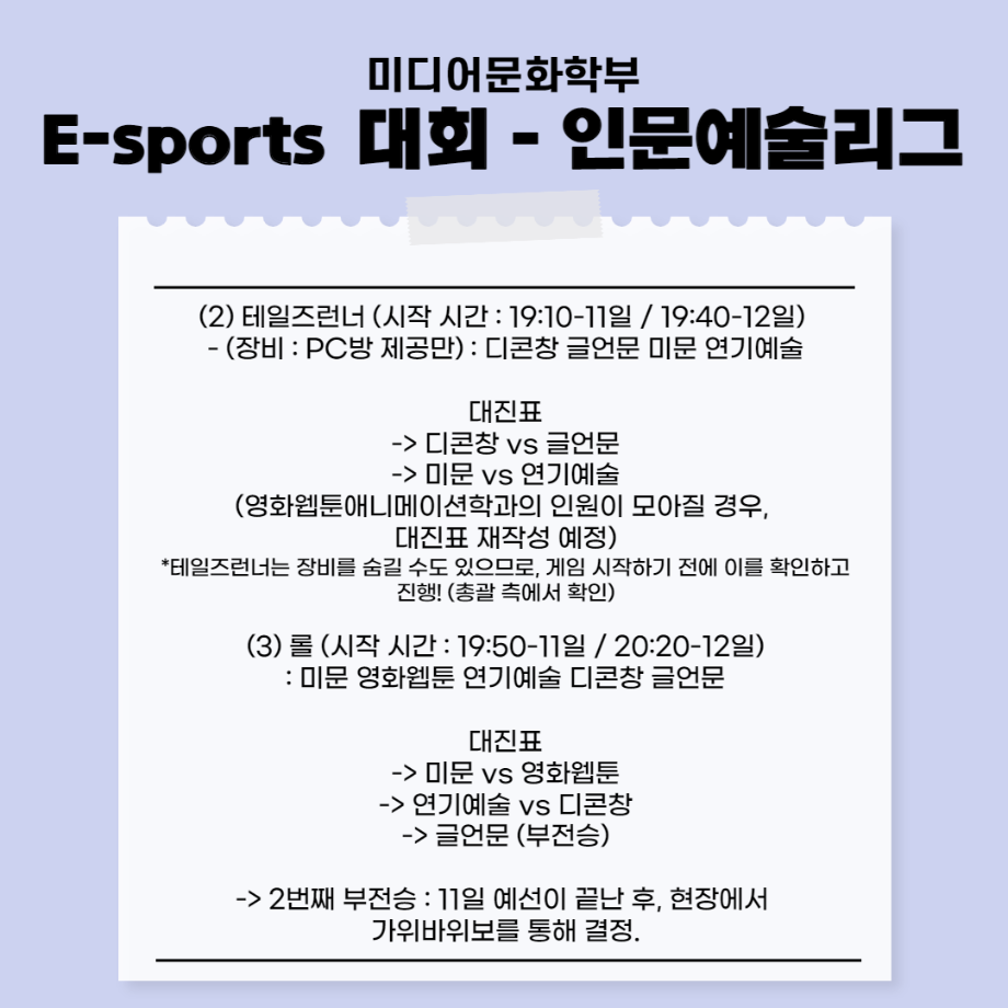 5월 11일부터 5월 12일까지 이스포츠대회 인문예술리그가 진행됩니다:)