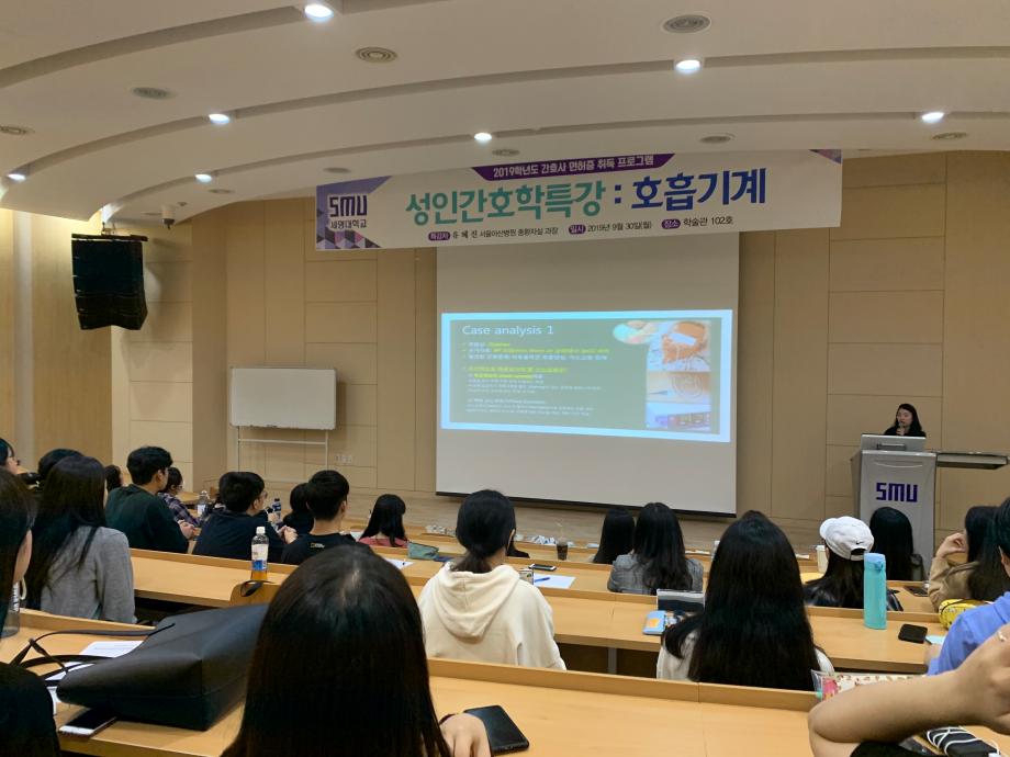 본문 시작 홈으로 학과특성화 사업 학과소개 교수소개 교육과정 학과소식 학과특성화 사업 커뮤니티 홈페이지가이드 2019년 2026년 2025년 2024년 2023년 2022년 2021년 2020년 2019년 2018년 2017년 2016년 2015년 2014년 2019년 페이스북 트위터 프린트 성인간호학특강 : 호흡기계 간호학과 7731 2019-09-30 1. 일시 : 2019년 9월 30일(월) 2. 특강자 : 서울아산병원 중환자실 유혜진 과장 3. 장소 : 학술관 102호 4. 내용 : 성인간호학 호흡기계 학습 내용 중 이해도가 낮은 인공호흡기 부분 심층 대비 목록 이전Peritoneal Dialysis Simulator Course 다음 성인간호특강 : 심혈관계 담당부서 : 간호학과 담당자 : - 연락처 : 043-649-1357 최종수정일 : 2024-10-26 만족도조사 만족도 조사 이 페이지에서 제공하는 정보에 대하여 만족하시나요? 매우만족 만족 보통 불만족 매우불만족