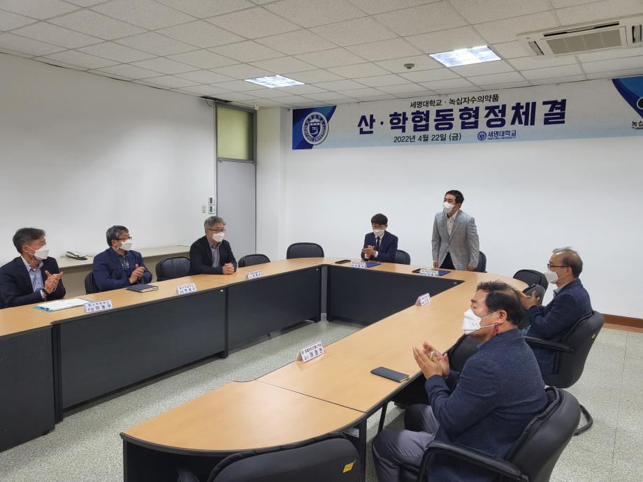 본문 시작 홈으로 학과게시판 학과소개 교육과정 학과게시판 관련사이트 홈페이지가이드 포토갤러리 학과소식 포토갤러리 동아리 소개 포토갤러리 페이스북 트위터 프린트 세명대학교 – 녹십자수의약품 간 업무협약 체결 동물바이오헬스학과 2853 2022-04-22 세명대학교 산학협력단(단장 신용국)은 22일 동물용의약품 및 동물용의료기기의 개발 등에 대한 공동연구, 학생 현장실습 등 인력의 상호교류 등에 대한 업무협약을 녹십자수의약품 주식회사(대표 나승식)와 체결했습니다. 목록 이전동물임상연구센터 및 LC/MS/MS 장비를 이용한 학생들의 연구활동 다음 2022학년도 동물바이오헬스학과 중등교육연계프로그램 시행 (단양소백산중학교) 담당부서 : 동물보건학과 담당자 : - 연락처 : 043-649-1627 최종수정일 : 2024-10-26 만족도조사 만족도 조사 이 페이지에서 제공하는 정보에 대하여 만족하시나요? 매우만족 만족 보통 불만족 매우불만족