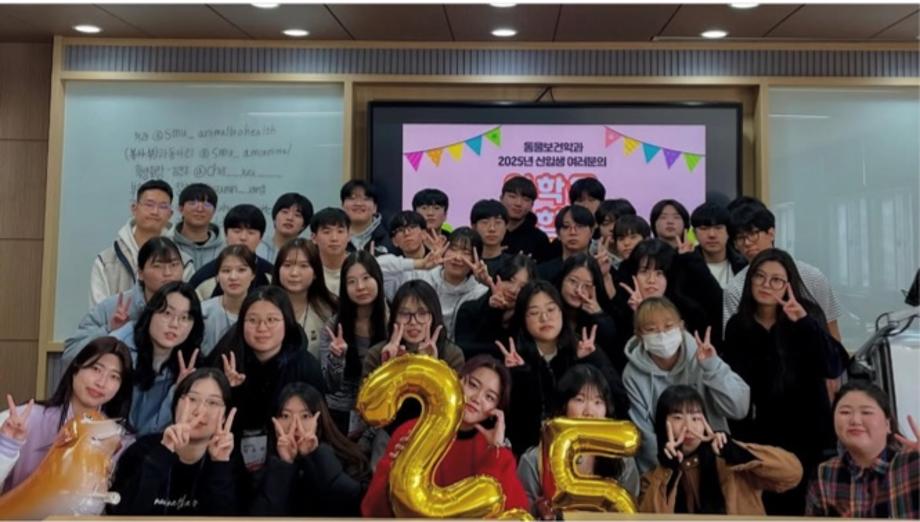 본문 시작 홈으로 학과게시판 학과소개 교육과정 학과게시판 관련사이트 홈페이지가이드 포토갤러리 학과소식 포토갤러리 동아리 소개 포토갤러리 페이스북 트위터 프린트 2025년 꿈설계학기 동물보건학과 2054 2025-03-28 새 학기의 시작과 함께 동물보건학과에 신입생이 입학했습니다! 2/24~2/26 2박3일동안 꿈 설계학기를 진행하였습니다. 설렘 가득한 첫걸음을 내딛는 신입생 여러분, 진심으로 환영합니다! 앞으로의 학과 생활이 의미 있고 즐거운 시간이 되길 바라며, 우리 함께 성장해 나갑시다 또한, 꿈 설계학기 동안 열과 성을 다해 지도해 주신 교수님들과 신입생 맞이를 위해 애써주신 학생회 여러분께도 깊이 감사드립니다! 목록 이전제천 동물보호센터 센터장 감사장 수여 다음 펫푸드 만들기 실습 진행 (크래커, 머핀) 담당부서 : 동물보건학과 담당자 : - 연락처 : 043-649-1627 최종수정일 : 2024-10-26 만족도조사 만족도 조사 이 페이지에서 제공하는 정보에 대하여 만족하시나요? 매우만족 만족 보통 불만족 매우불만족