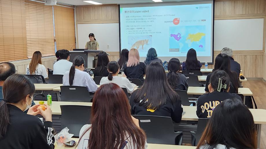 특히 현장에서 이루어진 야생동물 생태습성 및 행동학적 특성 분석은 교재로만 접하던 지식을 실제 연구·보전 활동과 연계할 수 있는 값진 시간이 되었습니다. 학생들은 보호 및 재활 중인 다양한 야생동물을 관찰하면서, 학문적 탐구심과 더불어 생태계 보전에 기여하는 전문가로서의 사명감을 다지는 계기를 마련했습니다.