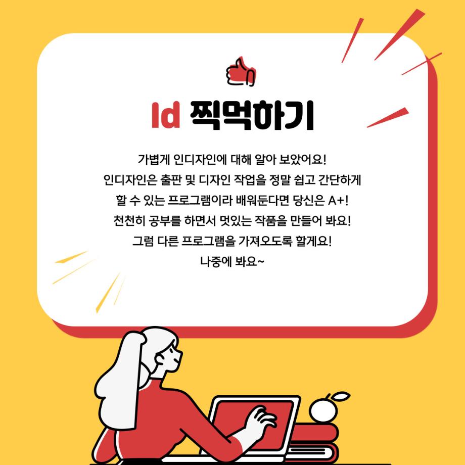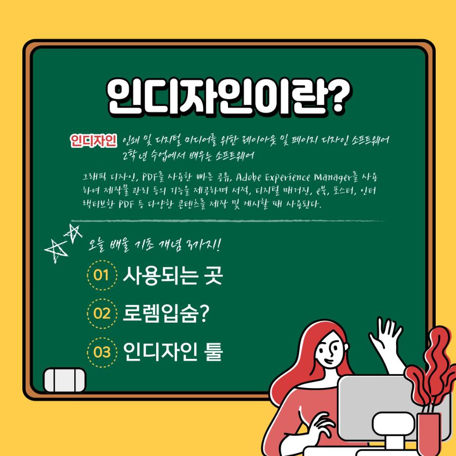 본문 시작 홈으로 학과자랑 학과소개 학과과정 시영소식 입학/취업 AI 학과자랑 SNS소통 홈페이지가이드 갤러리 학과자랑 갤러리 공모전 동아리 졸업전시회 갤러리 페이스북 트위터 프린트 예비 대학생을 위한 디자인 프로그램 설명 5탄 (인디자인) 시각영상디자인학과 2278 2022-02-13 2학년때 배우는 인디자인입니다. 목록 이전예비 대학생을 위한 디자인 프로그램 설명 4탄 (Html/Css) 다음 예비 대학생을 위한 디자인 프로그램 설명 6탄 (XD) 담당부서 : 시각영상디자인학과 담당자 : - 연락처 : 043-649-1726 최종수정일 : 2024-10-26 만족도조사 만족도 조사 이 페이지에서 제공하는 정보에 대하여 만족하시나요? 매우만족 만족 보통 불만족 매우불만족