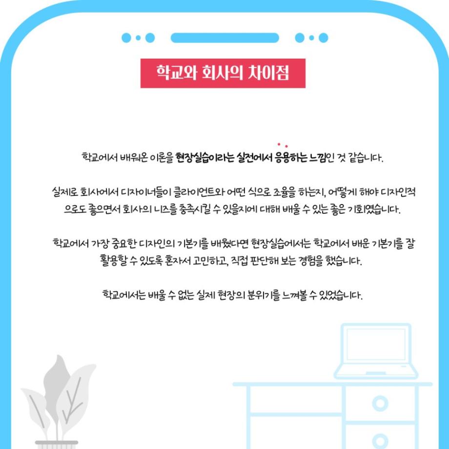 본문 시작 홈으로 학과자랑 학과소개 학과과정 시영소식 입학/취업 AI 학과자랑 SNS소통 홈페이지가이드 갤러리 학과자랑 갤러리 공모전 동아리 졸업전시회 갤러리 페이스북 트위터 프린트 2022년 여름방학 현장실습 알아보기! 2탄 시각영상디자인학과 4751 2022-08-03 2022년 여름방학 현장실습 알아보기! 2탄 유튜브 링크 https://www.youtube.com/watch?v=4CEG3-eYjWE&t=25s [출처] 2022년 여름방학 현장실습 알아보기! 2탄|작성자 세명대학교시각영상 목록 이전세명대학교 시각영상디자인 학생들의 현장실습 1탄 다음 세명대학교만의 특별한 휴식공간 담당부서 : 시각영상디자인학과 담당자 : - 연락처 : 043-649-1726 최종수정일 : 2024-10-26 만족도조사 만족도 조사 이 페이지에서 제공하는 정보에 대하여 만족하시나요? 매우만족 만족 보통 불만족 매우불만족