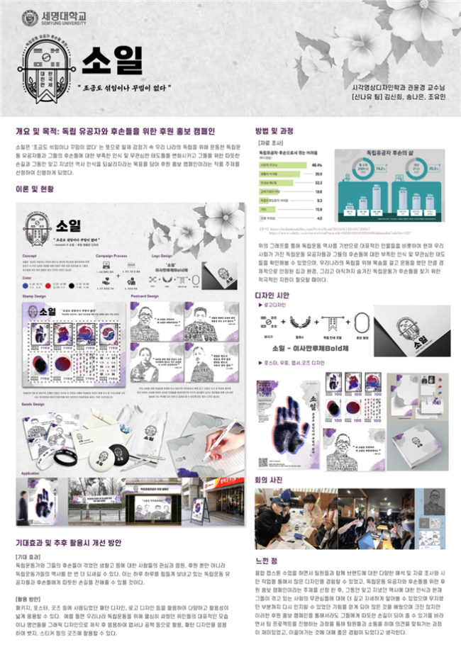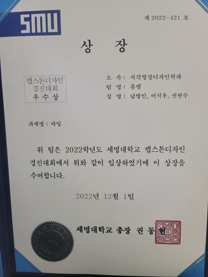 본문 시작 홈으로 학과자랑 학과소개 학과과정 시영소식 입학/취업 AI 학과자랑 SNS소통 홈페이지가이드 갤러리 학과자랑 갤러리 공모전 동아리 졸업전시회 갤러리 페이스북 트위터 프린트 2022학년도 캡스톤디자인 경진대회 - 대상/우수상 수상 시각영상디자인학과 10922 2022-12-10 2022학년도 캡스톤디자인 경진대회 - 대상/우수상 수상 본교 2021-2학기, 2022-1학기 캡스톤디자인 운영 학부(과) 대상으로 심사하여, 12월 1일 우리 학과 4학년 3팀이 본선에 올라가 그중에서, 매생팀(대상-제천,한밥)과 츄델팀(우수상-아잉)이 좋은 성적을 거두었습니다. 신나유팀(소일)도 본선 진출로 대회에 함께 하였습니다. 모두 모두 축하합니다. 목록 이전우리 학과를 모두 보여줄게! <시각·영상디자인학과 편> 다음 포탈시스템에 등장한 스타 세룡이 담당부서 : 시각영상디자인학과 담당자 : - 연락처 : 043-649-1726 최종수정일 : 2024-10-26 만족도조사 만족도 조사 이 페이지에서 제공하는 정보에 대하여 만족하시나요? 매우만족 만족 보통 불만족 매우불만족