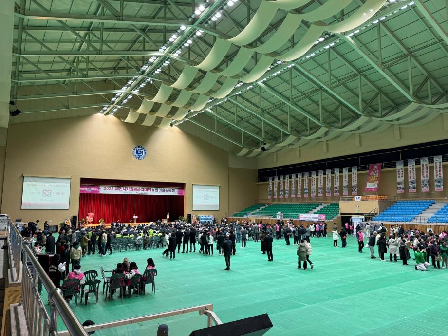 충북 제천시종합자원봉사센터는 지난 17일 세명대 세명체육관에서 올 한해 자원봉사에 헌신한 자원봉사자를 격려하기 위한 ‘2023 자원봉사자대회와 한마음체육대회’를 가졌다.
