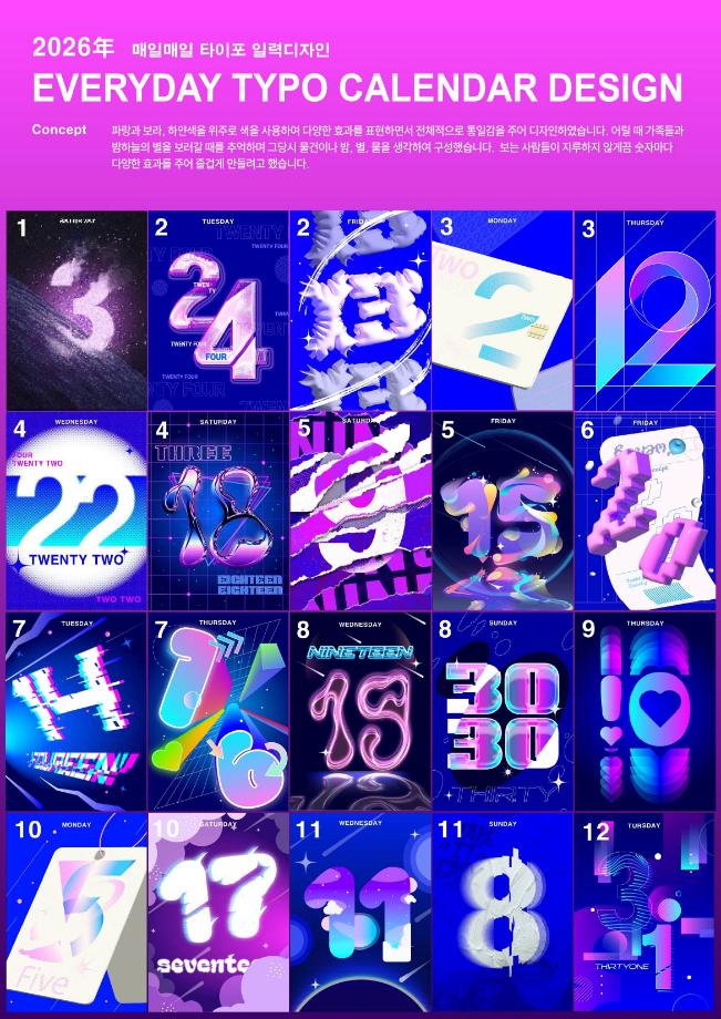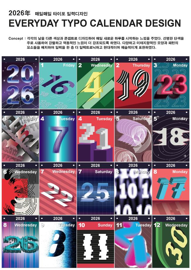본문 시작 홈으로 학과자랑 학과소개 학과과정 시영소식 입학/취업 AI 학과자랑 SNS소통 홈페이지가이드 갤러리 학과자랑 갤러리 공모전 동아리 졸업전시회 갤러리 페이스북 트위터 프린트 과제전 1 - 타이포그래피(2학년 수업 과제 작품) 시각영상디자인학과 2525 2024-08-18 과제전 1 - 타이포그래피(2학년 수업 과제 작품) 목록 이전2024년 시각영상디자인학과 상반기 공모전 수상 실적 다음 과제전 2 - 드로잉(1학년 수업 과제 작품) 담당부서 : 시각영상디자인학과 담당자 : - 연락처 : 043-649-1726 최종수정일 : 2024-10-26 만족도조사 만족도 조사 이 페이지에서 제공하는 정보에 대하여 만족하시나요? 매우만족 만족 보통 불만족 매우불만족