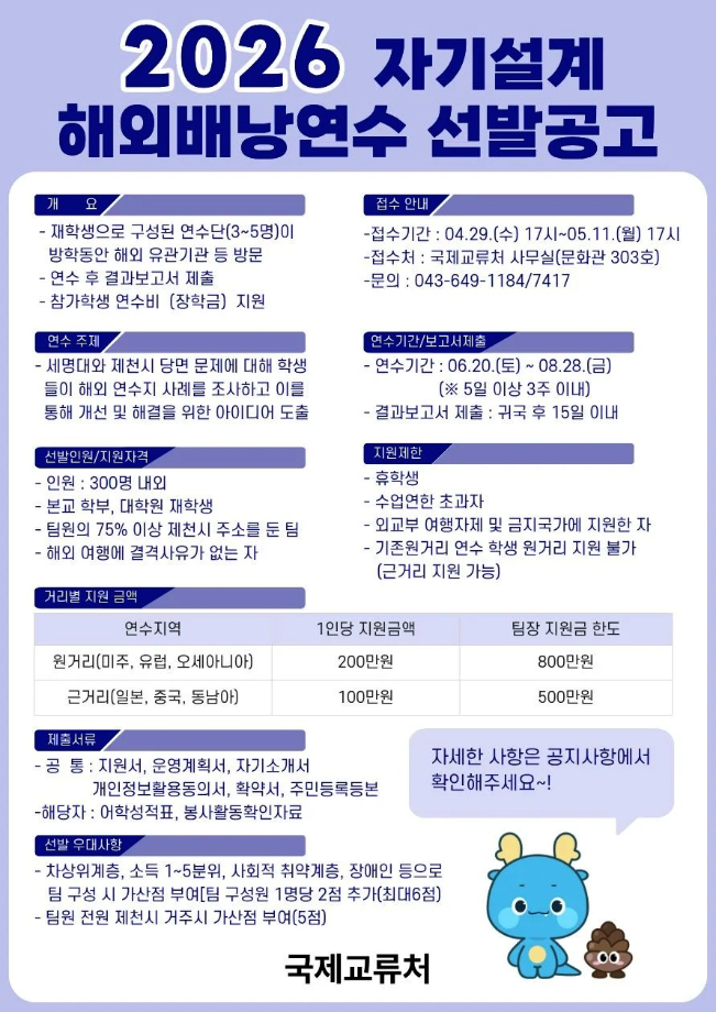 ◆ 문 의 : 국제교류처 (043-649-7417/1184)