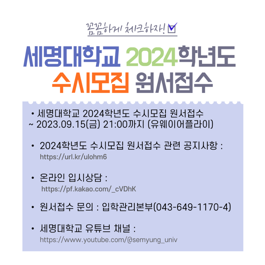 본문 시작 홈으로 학과생활 학과소개 교수소개 교과과정 학과생활 홈페이지가이드 사진게시판 공지사항 사진게시판 전공자료실 동아리 학과행사 사진게시판 페이스북 트위터 프린트 [수시모집] 2024학년도 세명대학교 수시모집 원서접수 안내 산업디자인학과 3401 2023-09-13 목록 이전[건강검진] 2023학년도 재학생 무료 건강검진 안내 다음 [메가캡스톤] 2023학년도 산업디자인학과 메가캡스톤 디자인 활동사진 담당부서 : 산업디자인학과 담당자 : - 연락처 : 043-649-1436 최종수정일 : 2024-10-26 만족도조사 만족도 조사 이 페이지에서 제공하는 정보에 대하여 만족하시나요? 매우만족 만족 보통 불만족 매우불만족