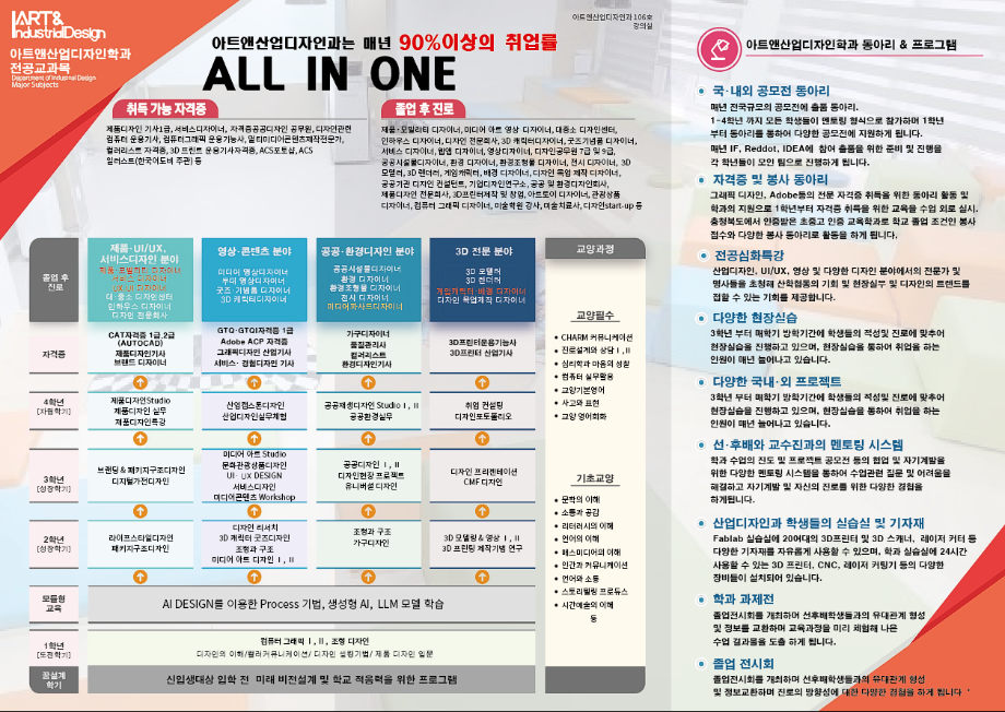 본문 시작 홈으로 학과생활 학과소개 교수소개 교과과정 학과생활 홈페이지가이드 사진게시판 공지사항 사진게시판 전공자료실 동아리 학과행사 사진게시판 페이스북 트위터 프린트 [브로셔] 산업디자인학과가 아트&산업디자인학과로 새롭게 태어납니다. 산업디자인학과 847 2025-06-12 목록 이전[공모전] 제60회 대한민국 디자인 전람회 다음 [배낭여행] 2025 세명대학교 자기설계 해외배낭연수 발대식 담당부서 : 산업디자인학과 담당자 : - 연락처 : 043-649-1436 최종수정일 : 2024-10-26 만족도조사 만족도 조사 이 페이지에서 제공하는 정보에 대하여 만족하시나요? 매우만족 만족 보통 불만족 매우불만족