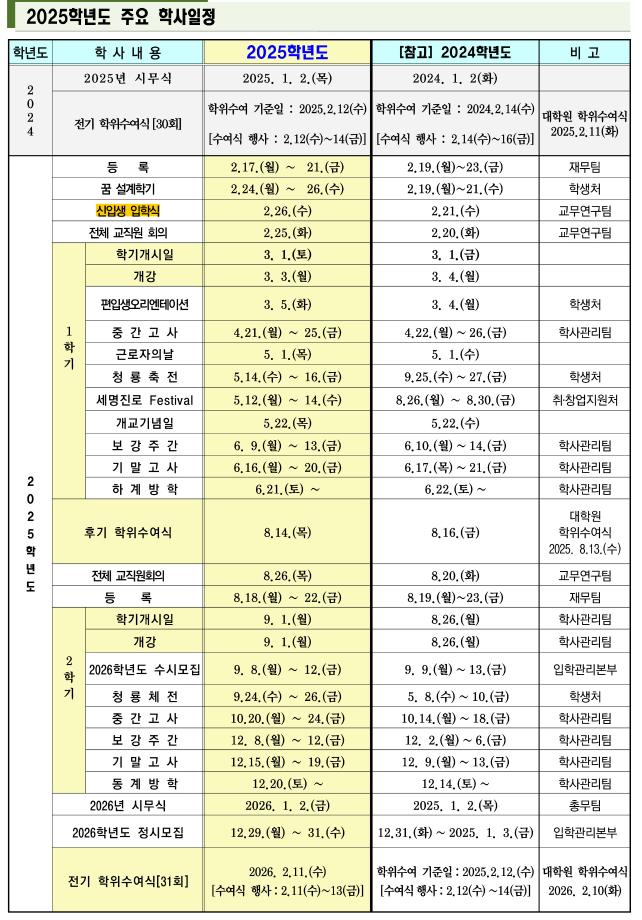 본문 시작 홈으로 학과생활 학과소개 교수소개 교과과정 학과생활 홈페이지가이드 사진게시판 공지사항 사진게시판 전공자료실 동아리 학과행사 사진게시판 페이스북 트위터 프린트 [교무처] 2025학년도 학사일정 산업디자인학과 873 2025-07-14 목록 이전[취창업처] 2025년 알쓸신잡 07월 1주차 다음 [취창업처] 2025년 알쓸신잡 07월 3주차 담당부서 : 산업디자인학과 담당자 : - 연락처 : 043-649-1436 최종수정일 : 2024-10-26 만족도조사 만족도 조사 이 페이지에서 제공하는 정보에 대하여 만족하시나요? 매우만족 만족 보통 불만족 매우불만족