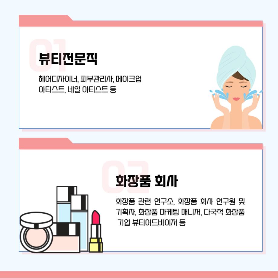 본문 시작 홈으로 커뮤니티 학과소개 교수소개 학과과정 커뮤니티 대학원 홈페이지가이드 포토갤러리 공지사항 채용정보 포토갤러리 Youtube 바로가기 Instargram 바로가기 Blog 바로가기 Facebook 바로가기 포토갤러리 페이스북 트위터 프린트 뷰티케어학 전공 졸업 후 진로 뷰티케어학 2326 2022-01-24 뷰티케어학부 졸업 후 진로 안내 입니다! 목록 이전🌹JUNO 현장실습🌹 다음 세명대학교 뷰티케어학과 졸업시 미용사 자격증/면허증 취득 가능!!
