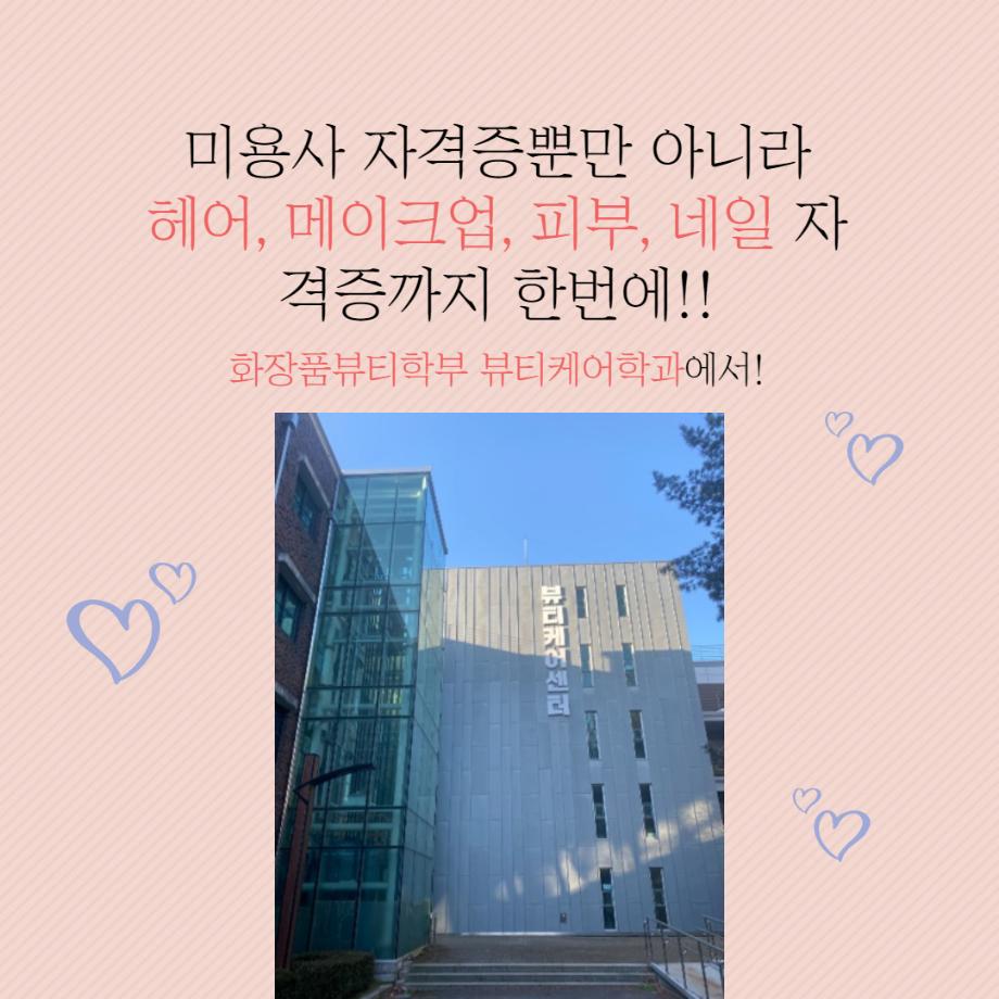 본문 시작 홈으로 커뮤니티 학과소개 교수소개 학과과정 커뮤니티 대학원 홈페이지가이드 포토갤러리 공지사항 채용정보 포토갤러리 Youtube 바로가기 Instargram 바로가기 Blog 바로가기 Facebook 바로가기 포토갤러리 페이스북 트위터 프린트 세명대학교 뷰티케어학과 졸업시 미용사 자격증/면허증 취득 가능!! 뷰티케어학 2484 2022-02-07 세명대학교 뷰티케어학과 졸업시 미용사 자격증/면허증 취득 가능합니다!! 목록 이전뷰티케어학 전공 졸업 후 진로 다음 세명대학교 뷰티케어학 헤어실습실