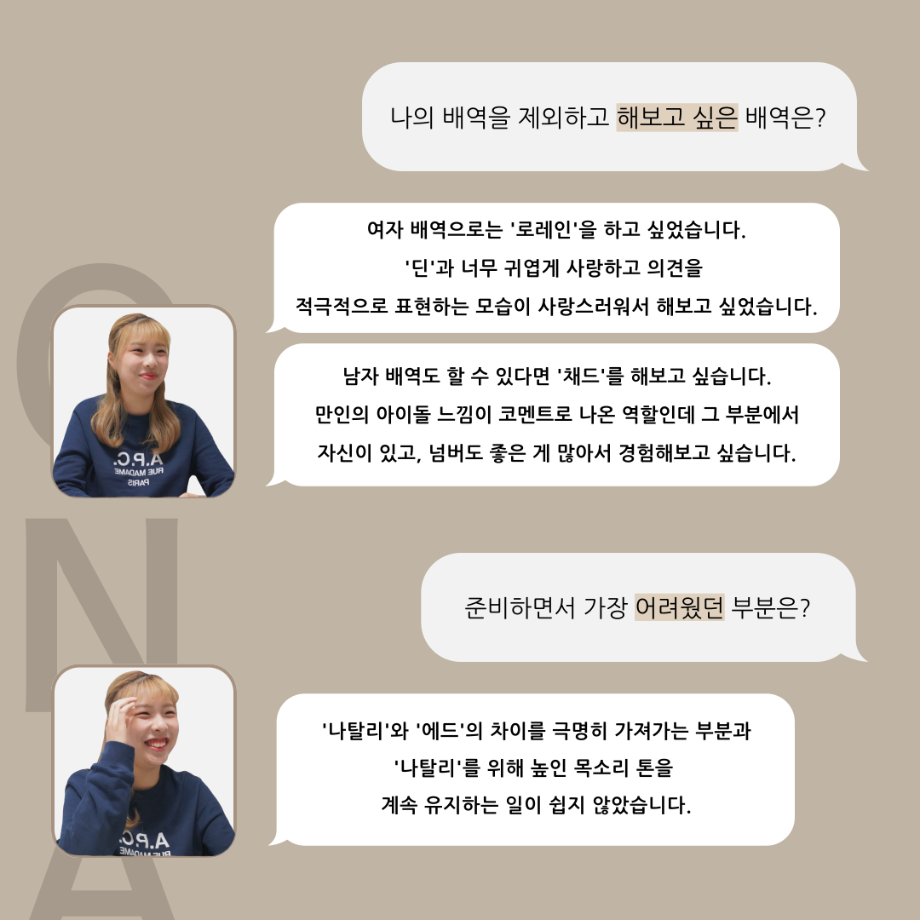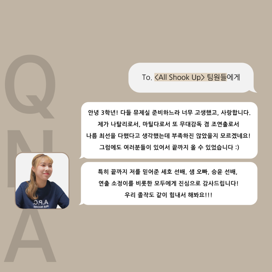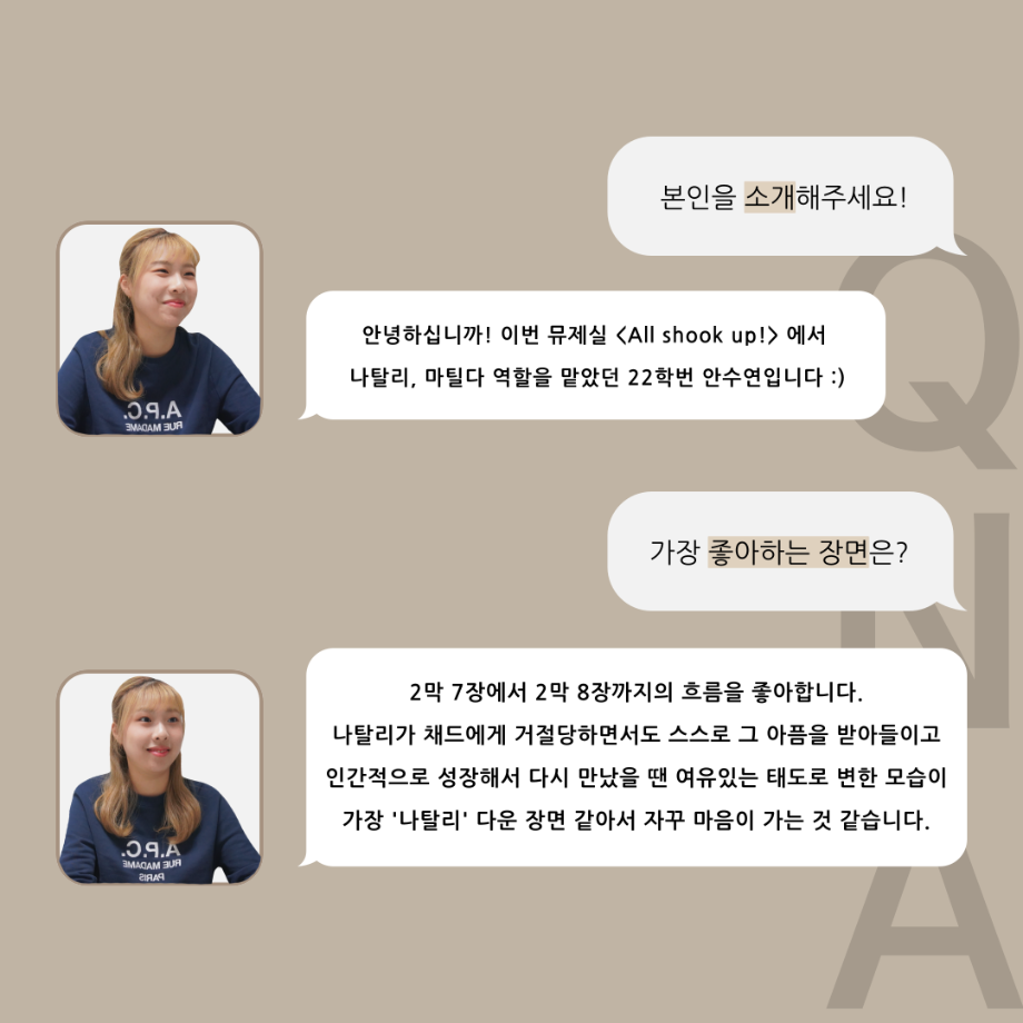 본문 시작 홈으로 커뮤니티 학과소개 입학정보 교수소개 학과과정 커뮤니티 공연예매 안내 홈페이지가이드 포토갤러리 공지사항 포토갤러리 작품DB 동아리 학사일정 학생회 포토갤러리 페이스북 트위터 프린트 ‘품’ 위 있는 인 ‘터뷰’ - 뮤지컬 제작실습 <올슉업> 나탈리 안수연 카드 뉴스 연기예술학과 2848 2025-01-14 . 목록 이전‘품’ 위 있는 인 ‘터뷰’ - 뮤지컬 제작실습 <올슉업> 채드 연세호 카드 뉴스 다음 ‘품’ 위 있는 인 ‘터뷰’ - 뮤지컬 제작실습 <올슉업> 데니스정지운 카드 뉴스 담당부서 : 연기예술학과 담당자 : - 연락처 : 043-649-1733 최종수정일 : 2024-10-26 만족도조사 만족도 조사 이 페이지에서 제공하는 정보에 대하여 만족하시나요? 매우만족 만족 보통 불만족 매우불만족