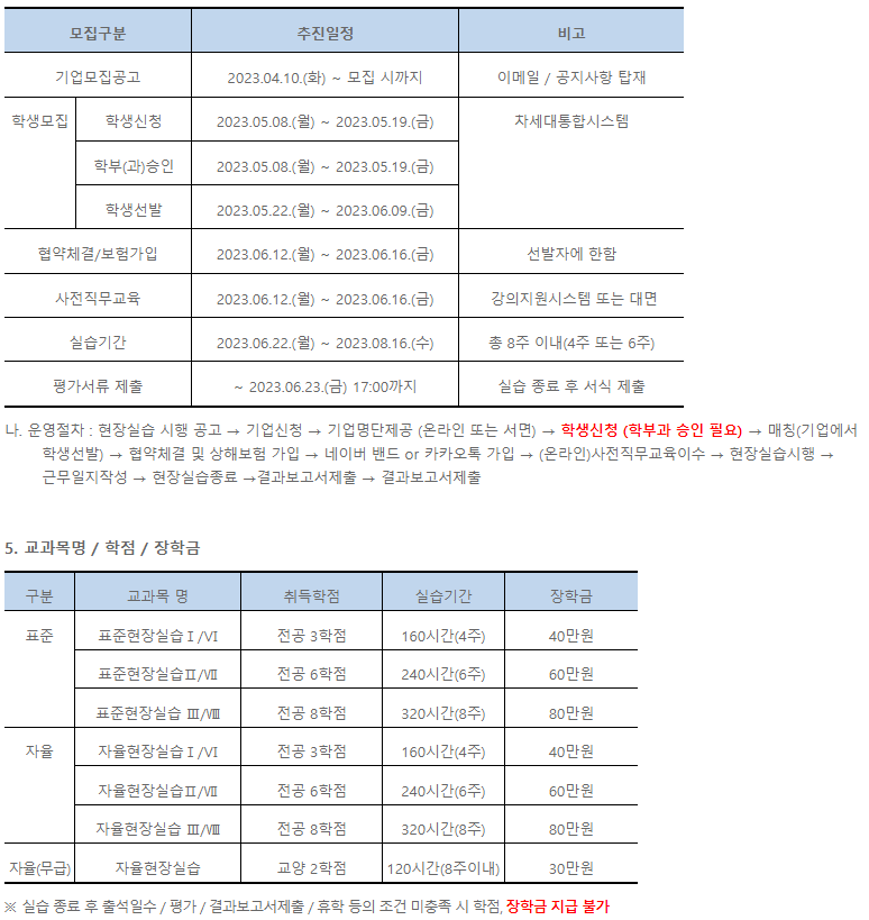 2023년 하계 표준/자율현장실습 신청 안내