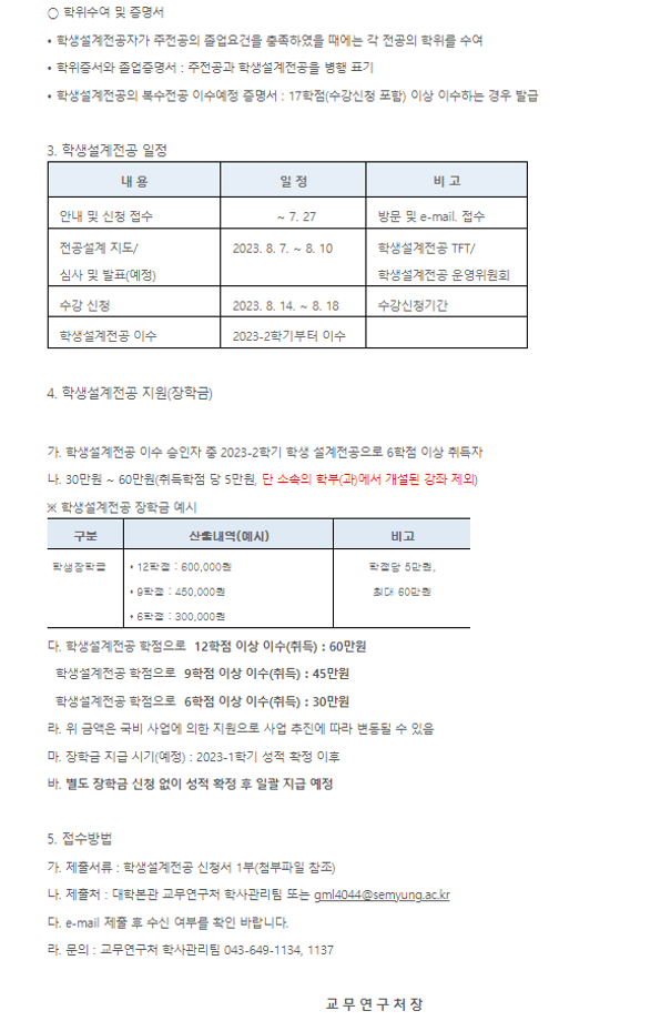 본문 시작 홈으로 커뮤니티 학과소개 입학정보 교수소개 학과과정 커뮤니티 공연예매 안내 홈페이지가이드 포토갤러리 공지사항 포토갤러리 작품DB 동아리 학사일정 학생회 포토갤러리 페이스북 트위터 프린트 학생설계전공2023학년도 2학기 시행 안내 연기예술학과 3338 2023-07-14 학생설계전공2023학년도 2학기 시행 안내 목록 이전제 94회 세명대학교 연기예술학과 정기공연 1학년 기초연기 물체 없는 행동 발표회<백지의 공백> 다음 예비예술인 지원사업 '잇다! 그리고 창작하다' 담당부서 : 연기예술학과 담당자 : - 연락처 : 043-649-1733 최종수정일 : 2024-10-26 만족도조사 만족도 조사 이 페이지에서 제공하는 정보에 대하여 만족하시나요? 매우만족 만족 보통 불만족 매우불만족