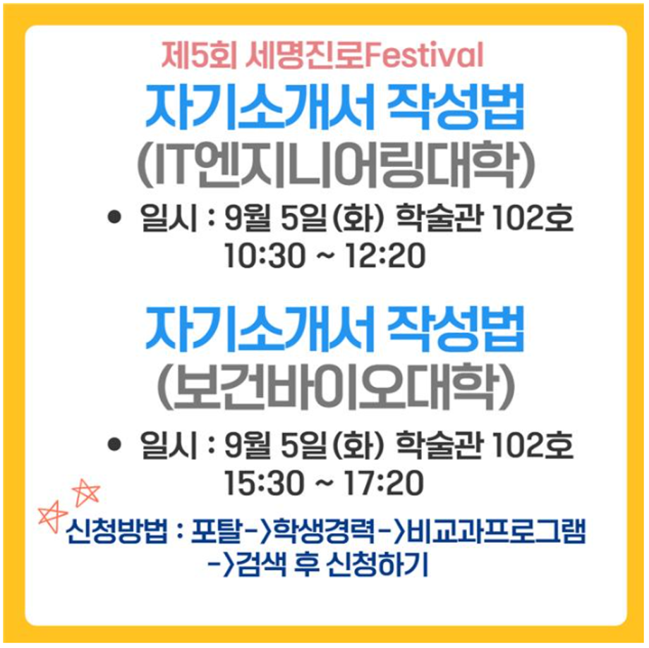★제5회 세명진로Festival 자기소개서 특강 모집안내★