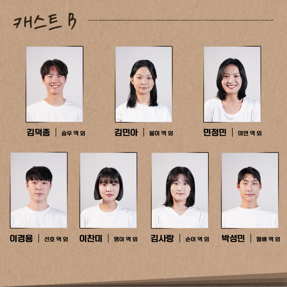 본문 시작 홈으로 커뮤니티 학과소개 입학정보 교수소개 학과과정 커뮤니티 공연예매 안내 홈페이지가이드 포토갤러리 공지사항 포토갤러리 작품DB 동아리 학사일정 학생회 포토갤러리 페이스북 트위터 프린트 제 16회 세명대학교 연기예술학과 졸업작품 <썬샤인의 전사들> 포스터 & 캐스트 연기예술학과 3536 2023-10-31 2023. 11. 02. CAST A 2023. 11. 03. CAST B 2023. 11. 04. CAST A 2023. 11. 05. CAST B 서울 대학로 민송아트홀 1관 목록 이전2023 공연예술 전공자를 위한 취업 특강 다음 학습법 특강 4차 - PPT제작 및 스피치 노하우 담당부서 : 연기예술학과 담당자 : - 연락처 : 043-649-1733 최종수정일 : 2024-10-26 만족도조사 만족도 조사 이 페이지에서 제공하는 정보에 대하여 만족하시나요? 매우만족 만족 보통 불만족 매우불만족