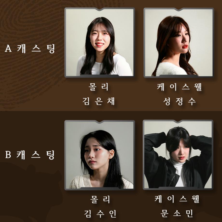 본문 시작 홈으로 커뮤니티 학과소개 입학정보 교수소개 학과과정 커뮤니티 공연예매 안내 홈페이지가이드 포토갤러리 공지사항 포토갤러리 작품DB 동아리 학사일정 학생회 포토갤러리 페이스북 트위터 프린트 연기예술학과 104회 정기공연 동계 프로젝트 <쥐덫> 캐스트 연기예술학과 3038 2024-02-28 “자, 다들 모여보세요. 제가 범인을 찾았습니다.“ - 공연일시 A CAST 03.02(토) 15:00 03.03(일) 18:00 B CAST 03.02(토) 19:00 03.03(일) 14:00 세명대학교 공학관 5층, 태양아트홀 - 첫 번째 작품 | 올모스트 메인 두 번째 작품 | 쥐덫 세 번째 작품 | 천국으로 가는 길 예매링크는 해당 인스타 소개글에서 확인할 수 있습니다. 목록 이전연기예술학과 104회 정기공연 동계 프로젝트 <쥐덫> 다음 연기예술학과 105회 정기공연 동계 프로젝트 <천국으로 가는 길> 프로필 스틸컷 담당부서 : 연기예술학과 담당자 : - 연락처 : 043-649-1733 최종수정일 : 2024-10-26 만족도조사 만족도 조사 이 페이지에서 제공하는 정보에 대하여 만족하시나요? 매우만족 만족 보통 불만족 매우불만족