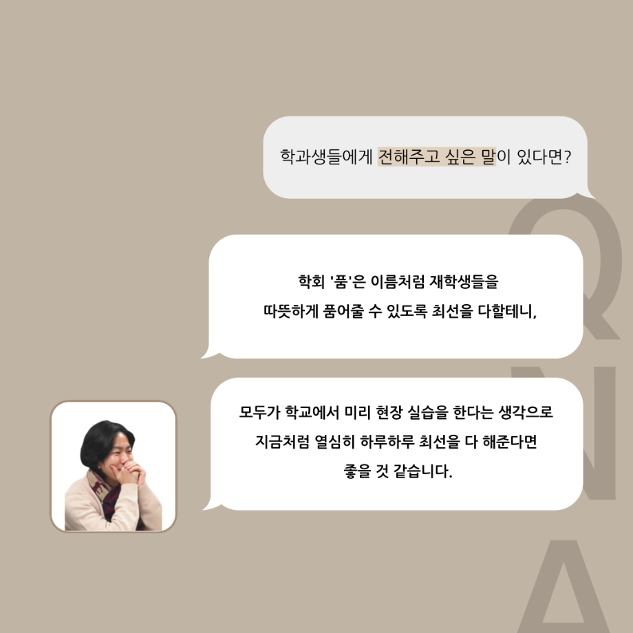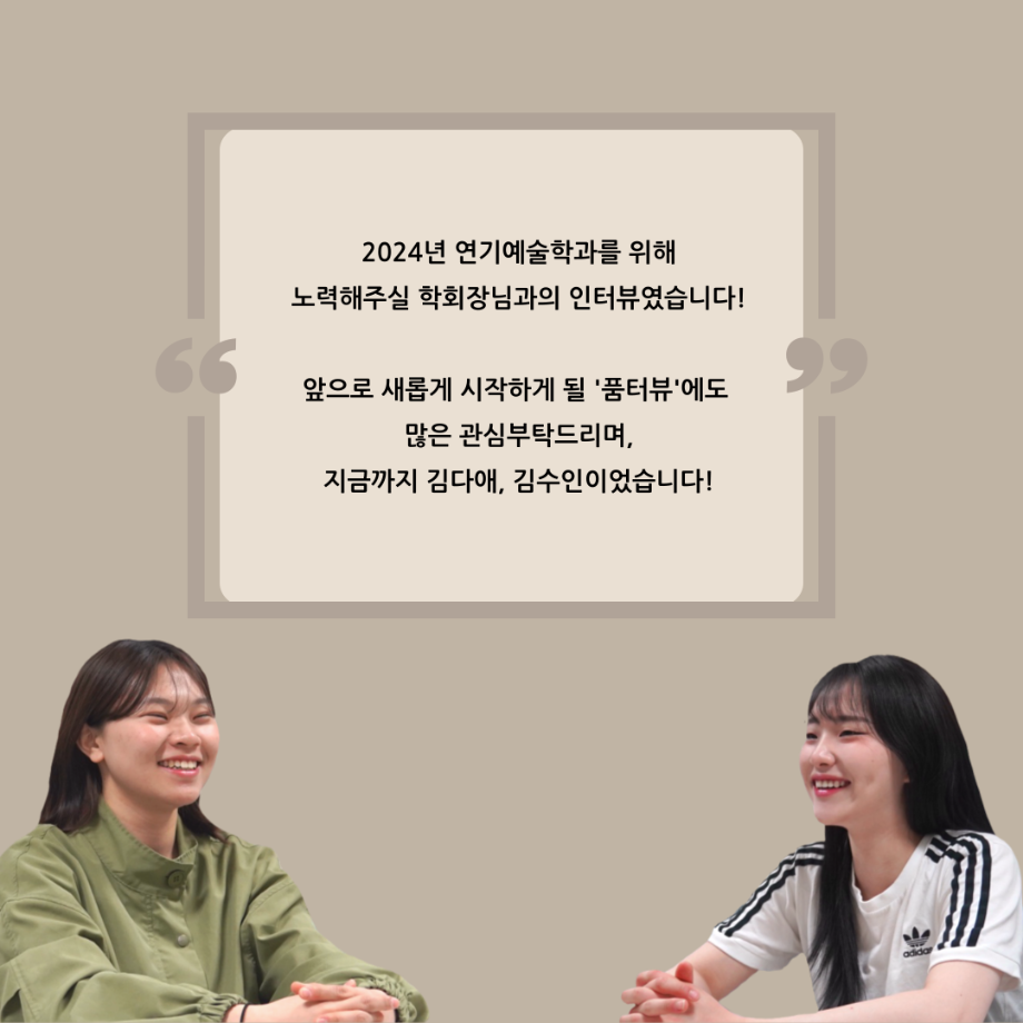 본문 시작 홈으로 커뮤니티 학과소개 입학정보 교수소개 학과과정 커뮤니티 공연예매 안내 홈페이지가이드 포토갤러리 공지사항 포토갤러리 작품DB 동아리 학사일정 학생회 포토갤러리 페이스북 트위터 프린트 '품'위있는 인'터뷰' - 24년도 학회장 <이재현> 연기예술학과 3361 2024-04-30 안녕하십니까. 24년도 학회 ‘품‘ 입니다. 학회 ‘품’의 첫번째 인터뷰로 세명대학교 연기예술학과 24년도 학회장인 이재현 학회장과 인터뷰(질문)하는 시간을 가졌습니다. 학회장으로서의 각오, 방향성 그리고 학과생에게 전하고 싶은 말과 학회에게 남기는 메세지 등을 질문하는 시간을 가졌습니다. 앞으로 있을 인터뷰 컨텐츠인 ‘품터뷰’ 많은 사랑 부탁드립니다. 목록 이전세명대학교 연기예술학과 극장동아리 ‘짜스트’ - 무대, 조명 다음 나의 학습역량 진단 결과 조회하기 [재공지] 2024학년도 학습역량 진단 조회 안내 담당부서 : 연기예술학과 담당자 : - 연락처 : 043-649-1733 최종수정일 : 2024-10-26 만족도조사 만족도 조사 이 페이지에서 제공하는 정보에 대하여 만족하시나요? 매우만족 만족 보통 불만족 매우불만족