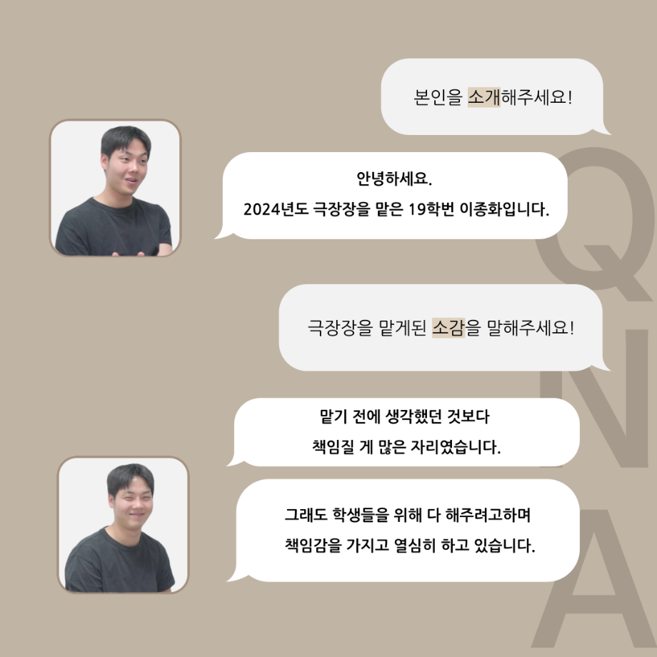본문 시작 홈으로 커뮤니티 학과소개 입학정보 교수소개 학과과정 커뮤니티 공연예매 안내 홈페이지가이드 포토갤러리 공지사항 포토갤러리 작품DB 동아리 학사일정 학생회 포토갤러리 페이스북 트위터 프린트 '품'위있는 인'터뷰' - 24년도 극장장 <이종화> 연기예술학과 3352 2024-07-12 안녕하십니다 24년도 학회 ‘품‘ 입니다. 학회 ‘품’의 세 번째 인터뷰로 세명대학교 연기예술학과 24학년도 극장장인 이종화 학우와 인터뷰 하는 시간을 가졌습니다. 극장장을 맡게된 소감과 극장은 어떤 의미가 있는지, 파트장과 학과생에게 전하고 싶은 말 등을 질문하는 시간을 가졌습니다. 앞으로 있을 인터뷰 컨텐츠인 ‘품터뷰’ 많은 사랑 부탁드립니다. 목록 이전'품'위있는 인'터뷰' - 24년도 부학회장 <최가람> 다음 제5회 대한민국 신직업·미래직업 아이디어 공모전 담당부서 : 연기예술학과 담당자 : - 연락처 : 043-649-1733 최종수정일 : 2024-10-26 만족도조사 만족도 조사 이 페이지에서 제공하는 정보에 대하여 만족하시나요? 매우만족 만족 보통 불만족 매우불만족