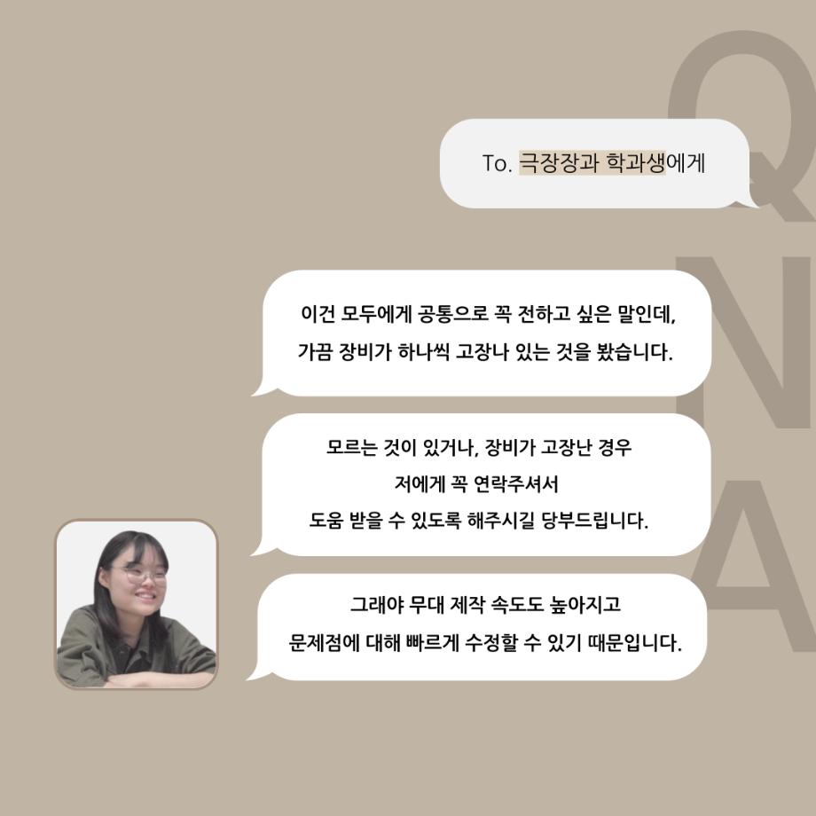 본문 시작 홈으로 커뮤니티 학과소개 입학정보 교수소개 학과과정 커뮤니티 공연예매 안내 홈페이지가이드 포토갤러리 공지사항 포토갤러리 작품DB 동아리 학사일정 학생회 포토갤러리 페이스북 트위터 프린트 '품'위있는 인'터뷰' - 24년도 무대장 <장보배> 연기예술학과 3299 2024-07-16 안녕하십니까. 24년도 학회 ‘품‘ 입니다. 학회 ‘품’의 네 번째 인터뷰로 세명대학교 연기예술학과 24학년도 무대장인 장보배 학우와 인터뷰 하는 시간을 가졌습니다. 무대장을 맡게된 소감과 무대는 어떤 의미가 있는지, 위험한 장비는 무엇이며 극장장과 학과생에게 전하고 싶은 말 등을 질문하는 시간을 가졌습니다. 앞으로 있을 인터뷰 컨텐츠인 ‘품터뷰’ 많은 사랑 부탁드립니다. 목록 이전제5회 대한민국 신직업·미래직업 아이디어 공모전 다음 2024학년도 2학기 표준현장실습 학생신청 안내 담당부서 : 연기예술학과 담당자 : - 연락처 : 043-649-1733 최종수정일 : 2024-10-26 만족도조사 만족도 조사 이 페이지에서 제공하는 정보에 대하여 만족하시나요? 매우만족 만족 보통 불만족 매우불만족