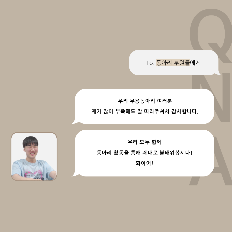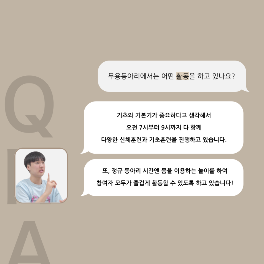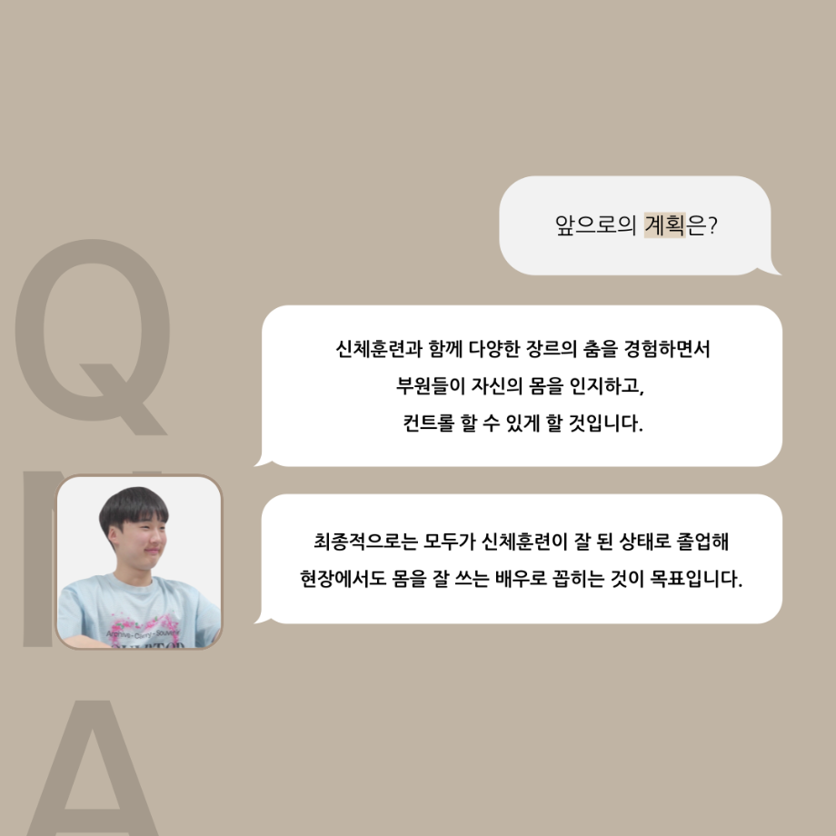 본문 시작 홈으로 커뮤니티 학과소개 입학정보 교수소개 학과과정 커뮤니티 공연예매 안내 홈페이지가이드 포토갤러리 공지사항 포토갤러리 작품DB 동아리 학사일정 학생회 포토갤러리 페이스북 트위터 프린트 '품'위있는 인'터뷰' - 24년도 무용동아리장 <윤샘> 연기예술학과 3332 2024-07-29 안녕하십니까. 24년도 학회 '품' 입니다. 학회 '품'의 일곱 번째 인터뷰로 세명대학교 연기예술학과 24학년도 무용동아리장인 윤샘 학우와 인터뷰 하는 시간을 가졌습니다. 무용 동아리장이 된 계기와 동아리에서는 어떤 활동을 하고있는지, 앞으로의 계획은 무엇으며 동아리 부원들에게 전하고 싶은 말 등을 질문하는 시간을 가졌습니다. 앞으로 있을 인터뷰 컨텐츠인 '품터뷰' 많은 사랑 부탁드립니다. 목록 이전2024학년도 2학기 학기제 창업대체학점제 참가자 모집안내 다음 2024년 굿네이버스 친환경 실천 캠페인 '그린이쥬' 모집 담당부서 : 연기예술학과 담당자 : - 연락처 : 043-649-1733 최종수정일 : 2024-10-26 만족도조사 만족도 조사 이 페이지에서 제공하는 정보에 대하여 만족하시나요? 매우만족 만족 보통 불만족 매우불만족
