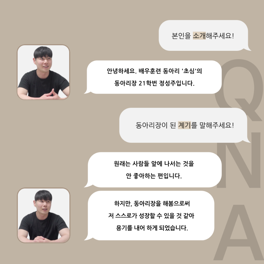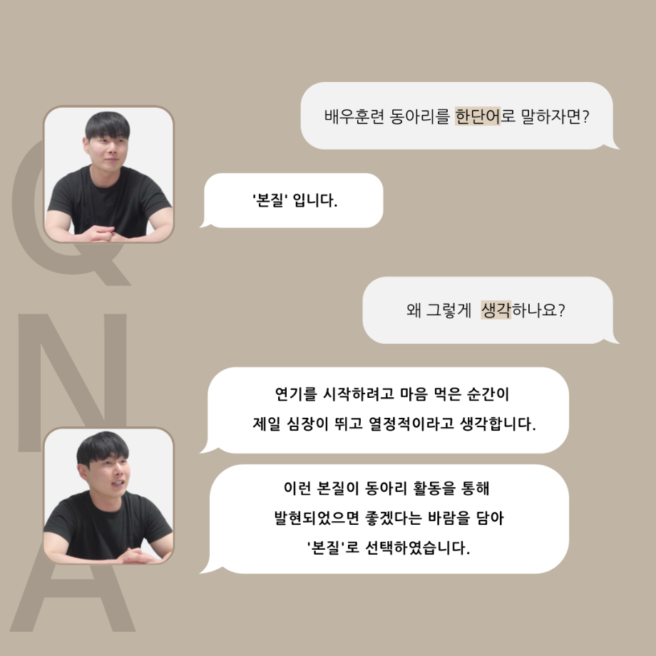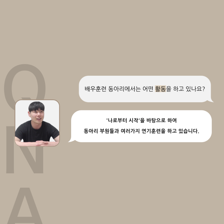 본문 시작 홈으로 커뮤니티 학과소개 입학정보 교수소개 학과과정 커뮤니티 공연예매 안내 홈페이지가이드 포토갤러리 공지사항 포토갤러리 작품DB 동아리 학사일정 학생회 포토갤러리 페이스북 트위터 프린트 '품'위있는 인'터뷰' - 24년도 배우훈련동아리장 <정성주> 연기예술학과 3511 2024-08-05 안녕하십니까. 24년도 학회 '품’ 입니다. 학회 ‘품’의 아홉 번째 인터뷰로 세명대학교 연기예술학과 24학년도 배우훈련 동아리장인 정성주 학우와 인터뷰 하는 시간을 가졌습니다. 배우훈련 동아리장이 된 계기와 동아리에서는 어떤 활동을 하고있는지, 앞으로의 계획은 무엇으며 동아리 부원들에게 전하고 싶은 말 등을 질문하는 시간을 가졌습니다. 앞으로 있을 인터뷰 컨텐츠인 ‘품터뷰’ 많은 사랑 부탁드립니다. 목록 이전'품'위있는 인'터뷰' - 24년도 뮤지컬동아리장 <정찬홍> 이전제천시 청년센터 청년테마특강 참가자 모집 담당부서 : 연기예술학과 담당자 : - 연락처 : 043-649-1733 최종수정일 : 2024-10-26 만족도조사 만족도 조사 이 페이지에서 제공하는 정보에 대하여 만족하시나요? 매우만족 만족 보통 불만족 매우불만족