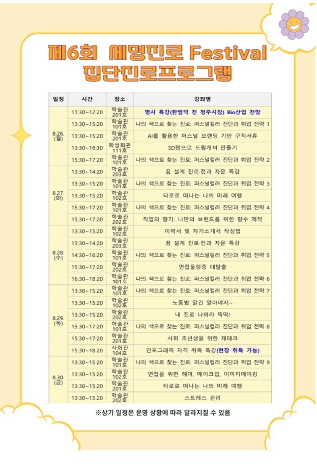 - 세명진로 Festival 우수참여자(장학금 지급)에 들기 위해 강의는 많이 들을수록 이득!!!