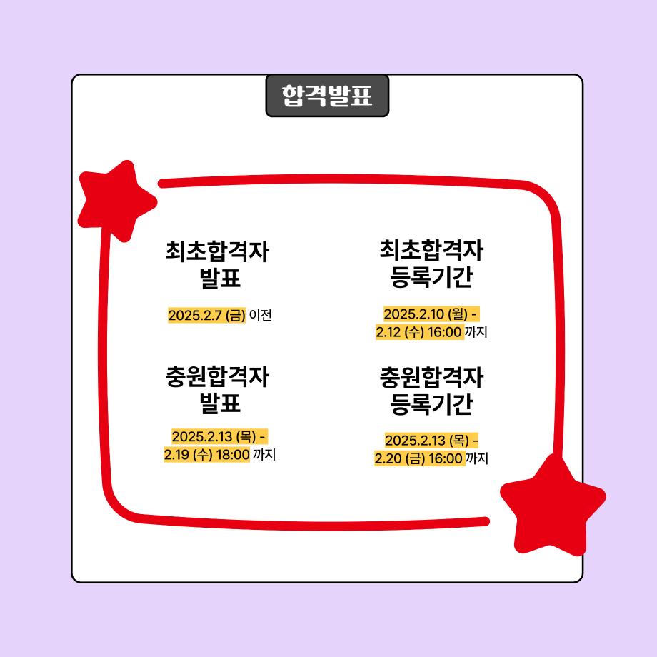 합격 : 25.02.13(목) ~ 25.02.19(수) 18:00까지