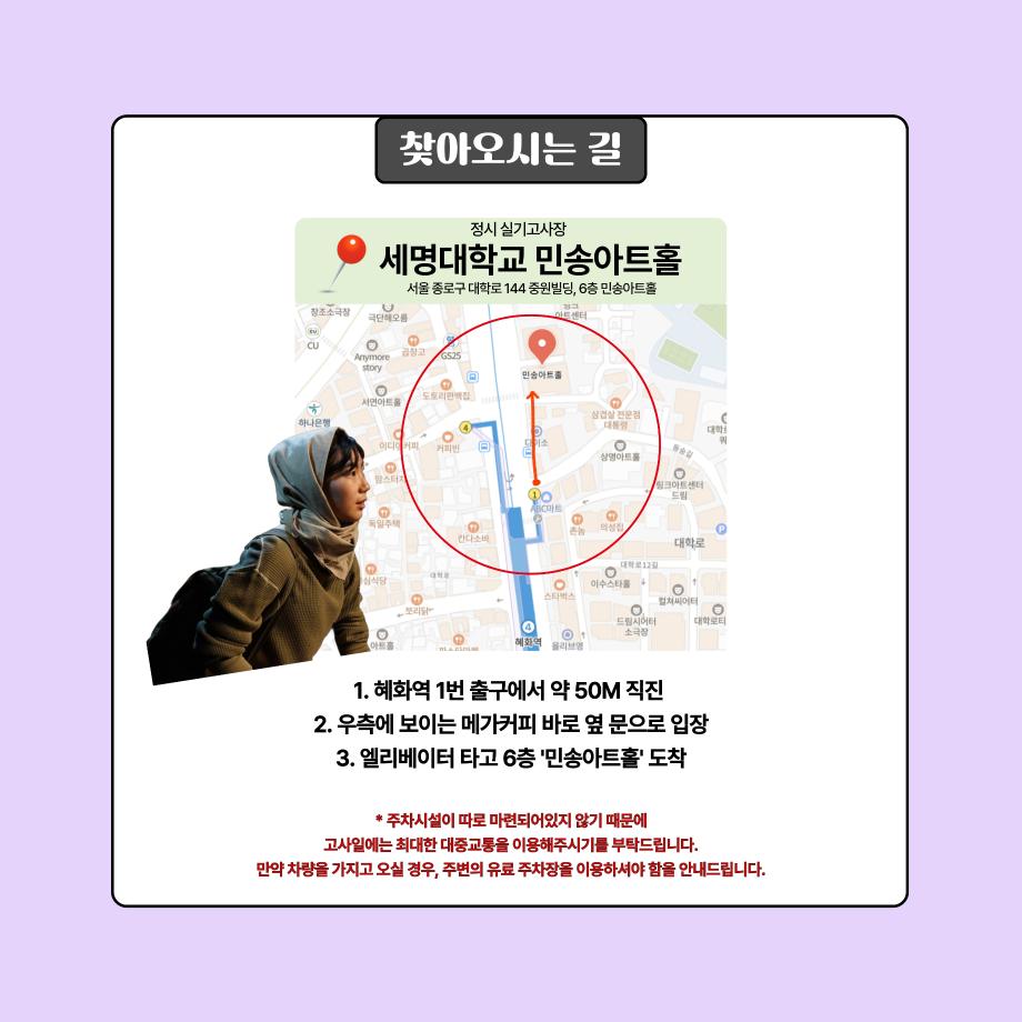 세명대학교 민송아트홀 (서울 종로구 대학로 144 중원빌딩 6층, 혜화역 1번 출구에서 50m 직진)