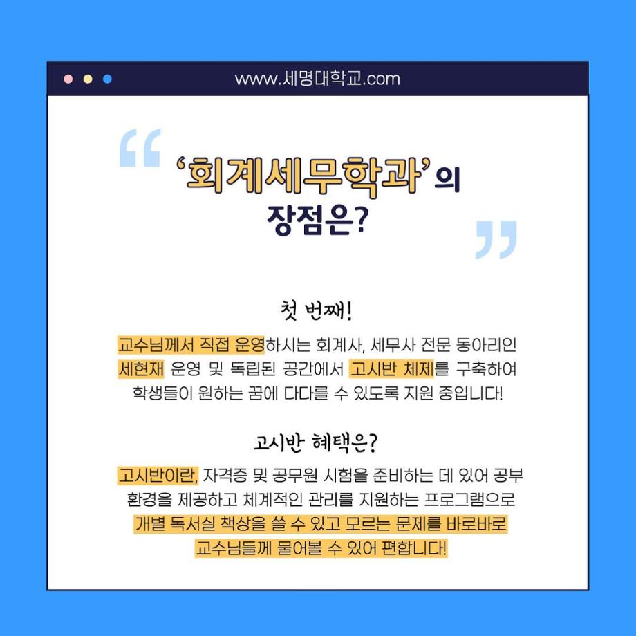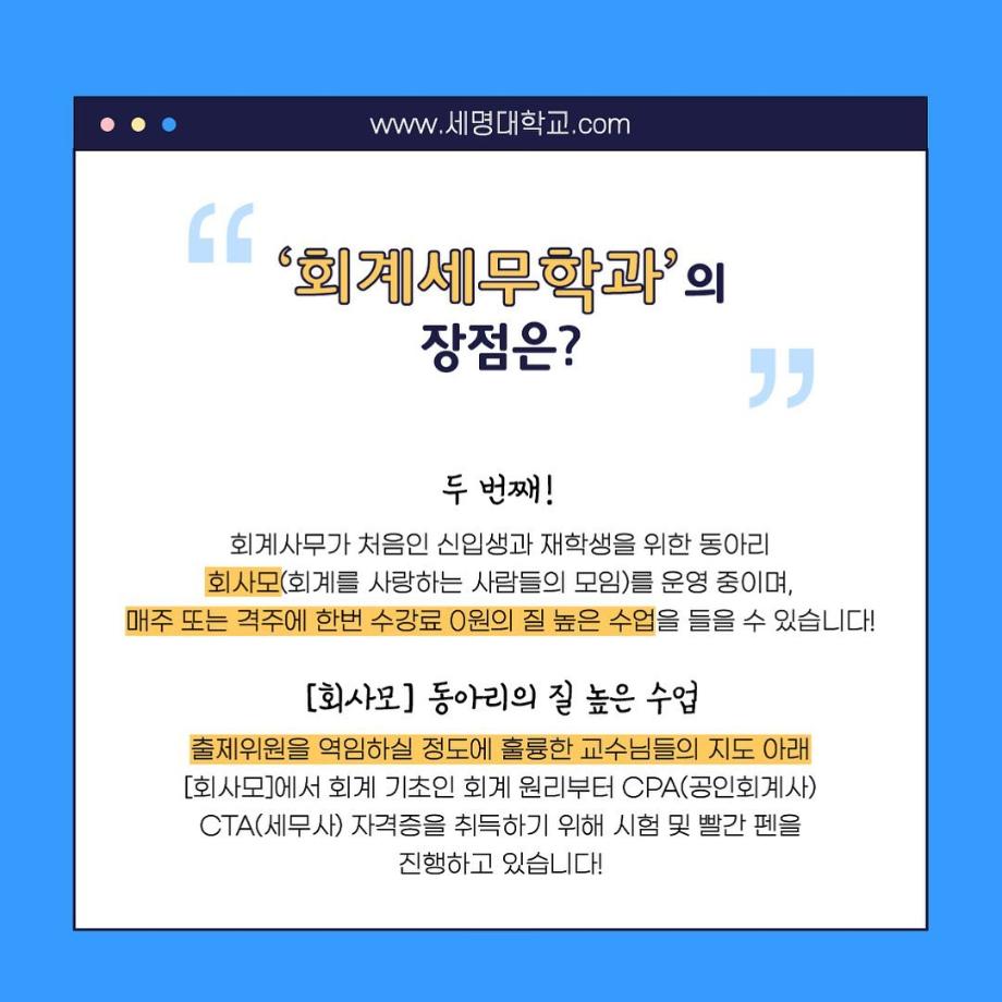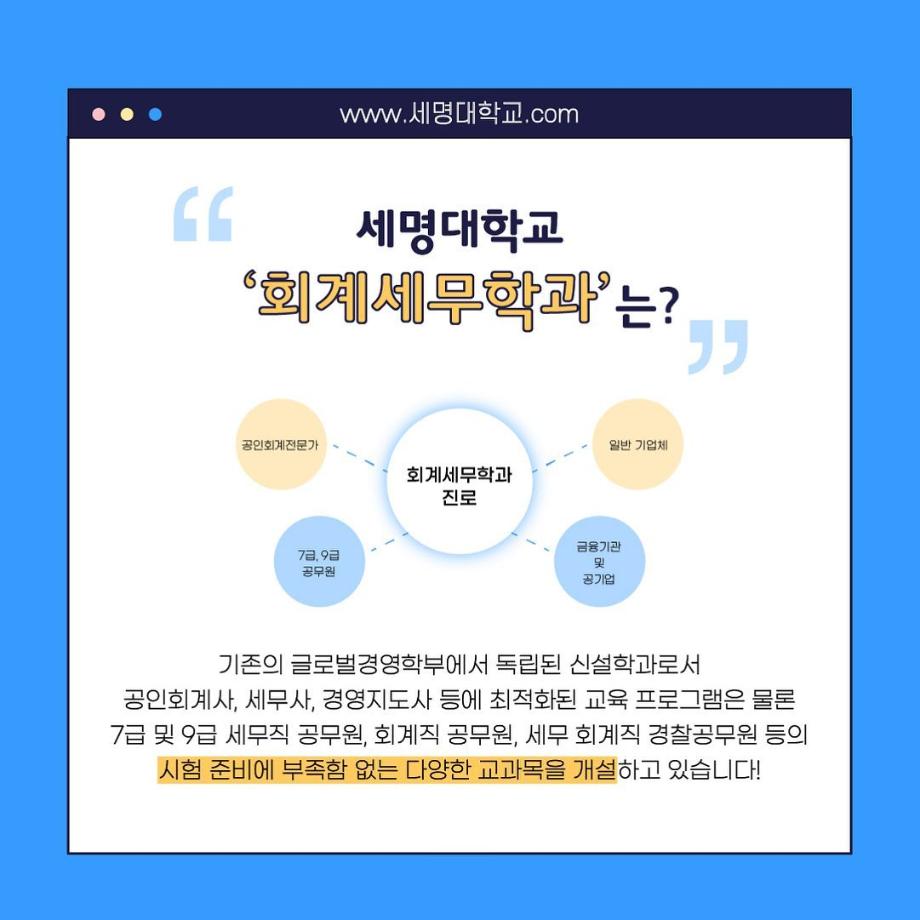 본문 시작 홈으로 학과소식 학과소개 취업정보 교육과정 학과소식 홈페이지가이드 포토갤러리 공지사항 포토갤러리 학과이야기 학과행사 포토갤러리 페이스북 트위터 프린트 우리 학과를 모두 보여줄게_회계세무학과 회계세무학과 1789 2022-09-14 우리 학과를 모두 보여줄게_'회계세무학과'편 목록 이전대학교 필수 술게임 다음 안영미의 대학 Pick! 세명대학교! 담당부서 : 회계세무학과 담당자 : - 연락처 : 043-649-1244 최종수정일 : 2024-10-26 만족도조사 만족도 조사 이 페이지에서 제공하는 정보에 대하여 만족하시나요? 매우만족 만족 보통 불만족 매우불만족