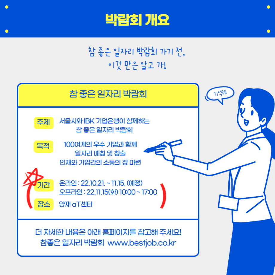 - 행사 명 : 서울시와 IBK가 함께하는 '참 좋은 일자리 박람회'