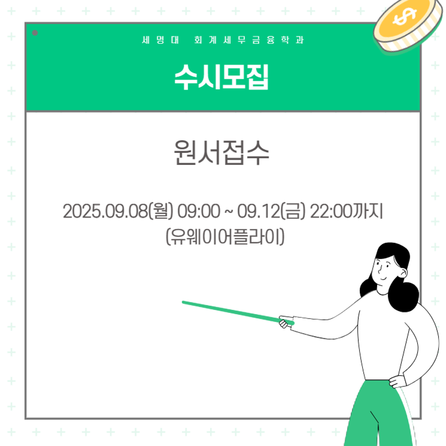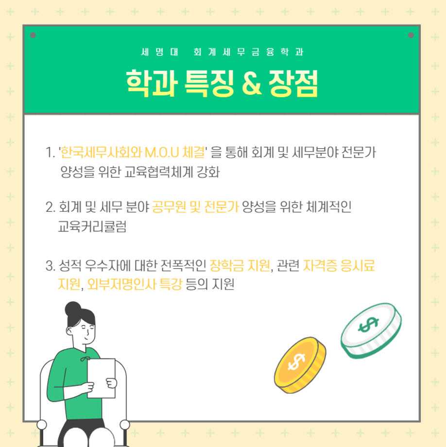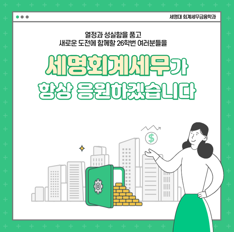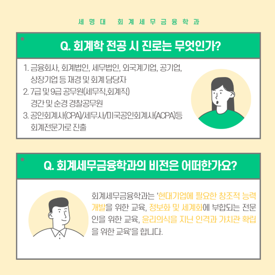 본문 시작 홈으로 학과소식 학과소개 취업정보 교육과정 학과소식 홈페이지가이드 포토갤러리 공지사항 포토갤러리 학과이야기 학과행사 포토갤러리 페이스북 트위터 프린트 💙2026학년도 회계세무금융학과 신입생모집 카드뉴스💙 회계세무금융학과 595 2025-09-09 2026학년도 회계세무금융학과 신입생모집 카드뉴스 목록 이전9월 학사일정 다음 💙세명대 회계세무금융학과 진로 로드맵💙 담당부서 : 회계세무학과 담당자 : - 연락처 : 043-649-1244 최종수정일 : 2024-10-26 만족도조사 만족도 조사 이 페이지에서 제공하는 정보에 대하여 만족하시나요? 매우만족 만족 보통 불만족 매우불만족