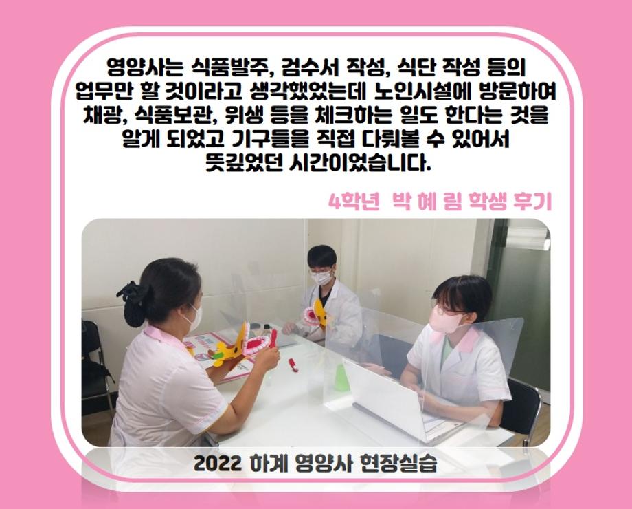 본문 시작 홈으로 커뮤니티 학부소개 진로·취업 교육과정 커뮤니티 대학원 입학상담 홈페이지가이드 갤러리 공지사항 갤러리 학생회 동문회 전공자료실 전공동아리 Youtube Instagram 갤러리 페이스북 트위터 프린트 2022 하계영양사 현장실습(제천시사회복지급식관리지원센터) 바이오식품영양학부 2147 2022-07-13 목록 이전고성권교수님 정년기념출판기념회 다음 2022 하계영양사 현장실습(세명고등학교) 담당부서 : 바이오식품영양학부 담당자 : - 연락처 : 043-649-1430 최종수정일 : 2024-10-26 만족도조사 만족도 조사 이 페이지에서 제공하는 정보에 대하여 만족하시나요? 매우만족 만족 보통 불만족 매우불만족