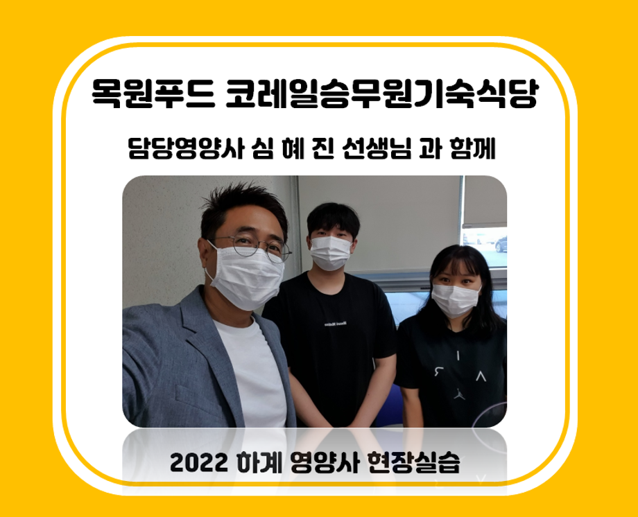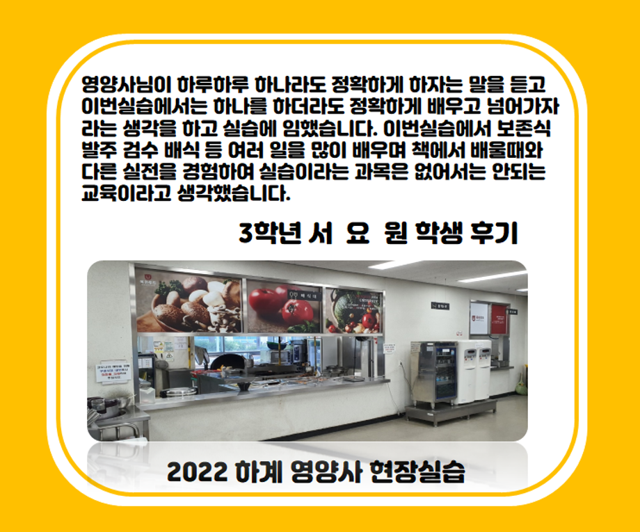 본문 시작 홈으로 커뮤니티 학부소개 진로·취업 교육과정 커뮤니티 대학원 입학상담 홈페이지가이드 갤러리 공지사항 갤러리 학생회 동문회 전공자료실 전공동아리 Youtube Instagram 갤러리 페이스북 트위터 프린트 2022 하계영양사 현장실습(목원푸드 코레일 승무원기숙식당) 바이오식품영양학부 2080 2022-07-18 목록 이전2022 하계영양사 현장실습(동일여자고등학교) 다음 2022 하계영양사 현장실습(제천어린이급식지원센터) 담당부서 : 바이오식품영양학부 담당자 : - 연락처 : 043-649-1430 최종수정일 : 2024-10-26 만족도조사 만족도 조사 이 페이지에서 제공하는 정보에 대하여 만족하시나요? 매우만족 만족 보통 불만족 매우불만족