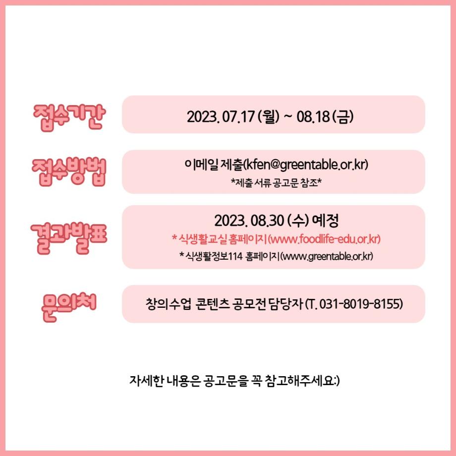 2023년 식생활교육 창의수업콘텐츠공모전