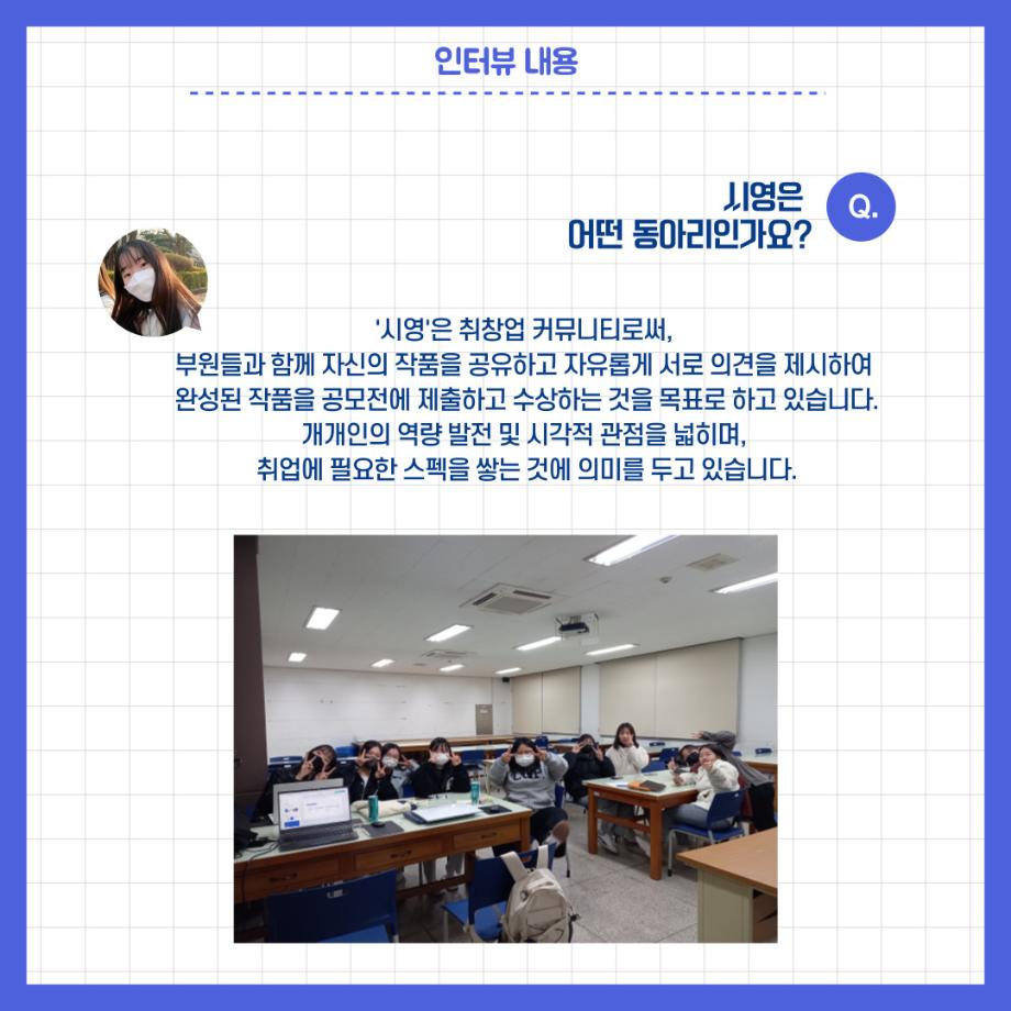 본문 시작 홈으로 학과자랑 학과소개 학과과정 시영소식 입학/취업 AI 학과자랑 SNS소통 홈페이지가이드 공모전 동아리 학과자랑 갤러리 공모전 동아리 졸업전시회 DesingN_us 외 DesingN_us 외 DesingN_us 외 페이스북 트위터 프린트 시각영상디자인학과 동아리 소개_시영 시각영상디자인학과 2188 2023-05-15 목록 이전2022년도 상반기 공모전 우수 수상작 다음 시각영상디자인학과 동아리 소개_미려 담당부서 : 시각영상디자인학과 담당자 : - 연락처 : 043-649-1726 최종수정일 : 2024-10-26 만족도조사 만족도 조사 이 페이지에서 제공하는 정보에 대하여 만족하시나요? 매우만족 만족 보통 불만족 매우불만족