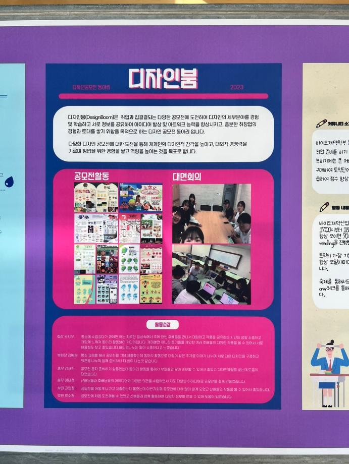 시각영상디자인학과 출신 임원이 진행하고 있으며 STUDESIGN, 디자인붐 등의 동아리가 참여하고 있습니다! 많이 관심과 참여 부탁드립니다.