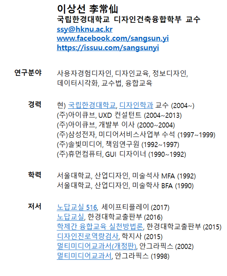 본문 시작 홈으로 시영소식 학과소개 학과과정 시영소식 입학/취업 AI 학과자랑 SNS소통 홈페이지가이드 학과행사 공지사항 학과행사 공모전 학생 인터뷰 학과행사 페이스북 트위터 프린트 시각실무체험 2022년도 학술특강 1 시각영상디자인학과 2779 2022-03-03 한경대 사용자경험 디자인산학협력 사례 일시 : 2022년 3월 15일 11시 디자인관 501호 이상선 교수님 (국립 한경대 디자인학과) 목록 이전강원랜드 하이원 사인시스템 특강 다음 (특강)병원의 서비스디자인 어떻게 시작할까? 연세대학교 산업디자인전공 이주명 교수님 담당부서 : 시각영상디자인학과 담당자 : - 연락처 : 043-649-1726 최종수정일 : 2024-10-26 만족도조사 만족도 조사 이 페이지에서 제공하는 정보에 대하여 만족하시나요? 매우만족 만족 보통 불만족 매우불만족