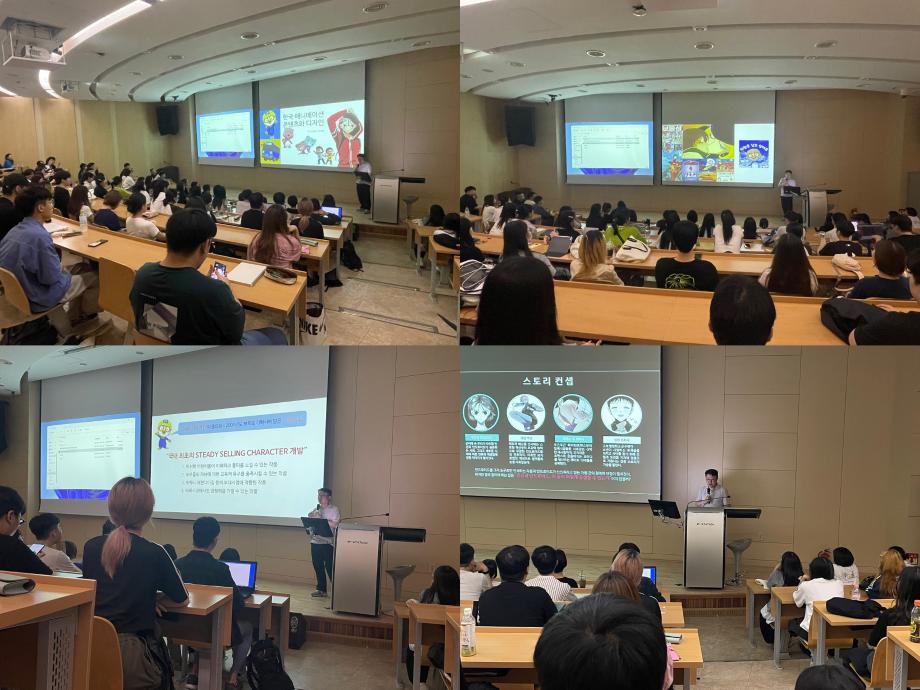 신창환 대표님께서는 뽀로로, 꼬마버스 타요, 티시태시 등의 다양한 컨텐츠에 관여하셨으며 학생들에게 디자이너의 관점에서 바라본 애니메이션 업계의 현황과 애니메이션 개발 구조 등을 강연해 주셨습니다.