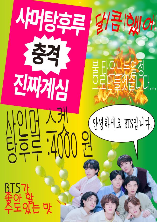 본문 시작 홈으로 시영소식 학과소개 학과과정 시영소식 입학/취업 AI 학과자랑 SNS소통 홈페이지가이드 학과행사 공지사항 학과행사 공모전 학생 인터뷰 학과행사 페이스북 트위터 프린트 청룡축전 먹거리부스 시각영상디자인학과 2378 2023-09-19 청룡축전 2023. 09. 20 (수) ~ 2023. 09. 21 (목) 먹거리부스에서 탕후루(통귤, 샤인머스캣, 토마토)를 판매합니다! 이벤트도 있으니 많은 관심과 사랑 부탁드립니다! 목록 이전2023학년도 인문예술대 제천시자원봉사센터 프리마켓 다음 청룡축전 먹거리부스 마무리 담당부서 : 시각영상디자인학과 담당자 : - 연락처 : 043-649-1726 최종수정일 : 2024-10-26 만족도조사 만족도 조사 이 페이지에서 제공하는 정보에 대하여 만족하시나요? 매우만족 만족 보통 불만족 매우불만족