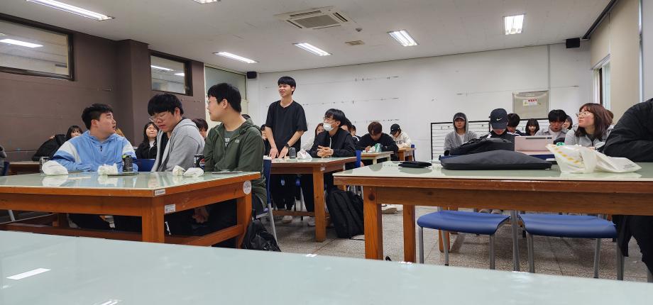 본문 시작 홈으로 시영소식 학과소개 학과과정 시영소식 입학/취업 AI 학과자랑 SNS소통 홈페이지가이드 학과행사 공지사항 학과행사 공모전 학생 인터뷰 학과행사 페이스북 트위터 프린트 1학년 신입생들과 교수님들과의 런치 타임-' 햄버거 데이'~ 시각영상디자인학과 1752 2024-05-01 1학년 신입생들과 교수님들과의 런치 타임- '햄버거 데이'~ 중간고사를 잘 마치고 또 5월의 청룡체전과 멘토링 등 캠퍼스 생활을 기대하고 응원하기 위해 4월 30일 1시에 '햄버거 데이' 자리를 마련하여 신입생들과 교수님들이 햄버거도 먹으며 대화하는 즐거운 시간을 가졌습니다~ 목록 이전엠티 잘 다녀왓습니다~ 다음 2024 청룡체전 담당부서 : 시각영상디자인학과 담당자 : - 연락처 : 043-649-1726 최종수정일 : 2024-10-26 만족도조사 만족도 조사 이 페이지에서 제공하는 정보에 대하여 만족하시나요? 매우만족 만족 보통 불만족 매우불만족