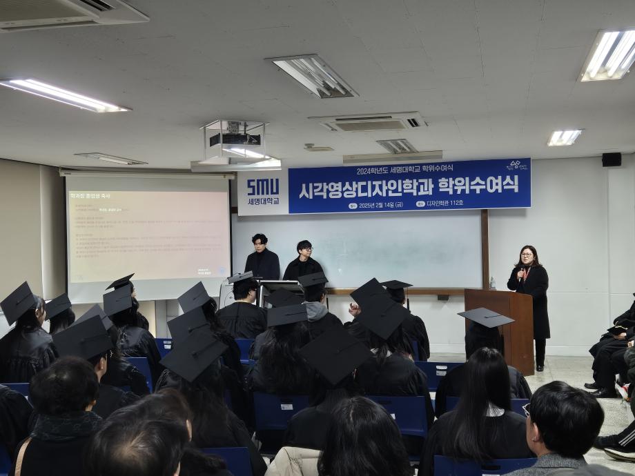 본문 시작 홈으로 시영소식 학과소개 학과과정 시영소식 입학/취업 AI 학과자랑 SNS소통 홈페이지가이드 학과행사 공지사항 학과행사 공모전 학생 인터뷰 학과행사 페이스북 트위터 프린트 2024학년도 세명대학교 학위수여식 시각영상디자인학과 1649 2025-02-15 2025. 2. 14(금) 시각영상디자인학과 학위수여식이 진행되었습니다 4학년 졸업생들과 학부모님 지인들이 많이 참여하고 선배후배들의 송사와 답사 그리고 인문대(7개 학과가 속한) 전체 수석 '박수빈'학생과 학과 수석 '송윤진'학생의 수상으로 더욱 빛나는 행사가 되었습니다. 모두모두 졸업 축하합니다. 목록 이전AI 콘텐츠연구소 전시 안내 다음 2025년 2월 24일 시각영상디자인학과 꿈설계학기 행사 담당부서 : 시각영상디자인학과 담당자 : - 연락처 : 043-649-1726 최종수정일 : 2024-10-26 만족도조사 만족도 조사 이 페이지에서 제공하는 정보에 대하여 만족하시나요? 매우만족 만족 보통 불만족 매우불만족