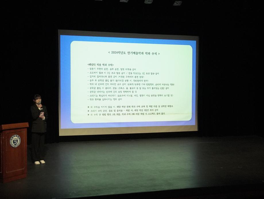 본문 시작 홈으로 학과소개 학과소개 입학정보 교수소개 학과과정 커뮤니티 공연예매 안내 홈페이지가이드 학과행사 학과개요 학과장인사말 학과연혁 세명대학교 민송아트홀 학과행사 진로 학과행사 페이스북 트위터 프린트 2024년 세명대학교 연기예술학과 개강총회 연기예술학과 2413 2024-03-20 안녕하십니까.제 16대 연기예술학과 학생회 품 입니다. 연기예술학과 1학기 개강총회가 지난 3월 14일에 진행됐습니다. 교수님의 말씀과 예산안, 복학생 소개 등을 진행했습니다. - 2024년 1학기 개강총회에 참석해주신 모든 분들께 감사의 인사를 드리며, 앞으로 더 활발하고 소통이 많은 연기예술학과가 되도록 노력하겠습니다. 목록 이전2024년 세명대학교 꿈 설계 학기 다음 2024 세명대학교 연기예술학과 1학기 맞이 대청소 영상 숏츠 만족도조사 만족도 조사 이 페이지에서 제공하는 정보에 대하여 만족하시나요? 매우만족 만족 보통 불만족 매우불만족