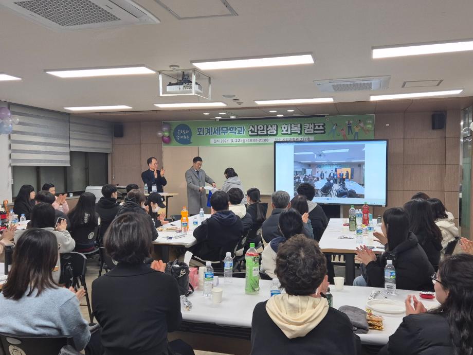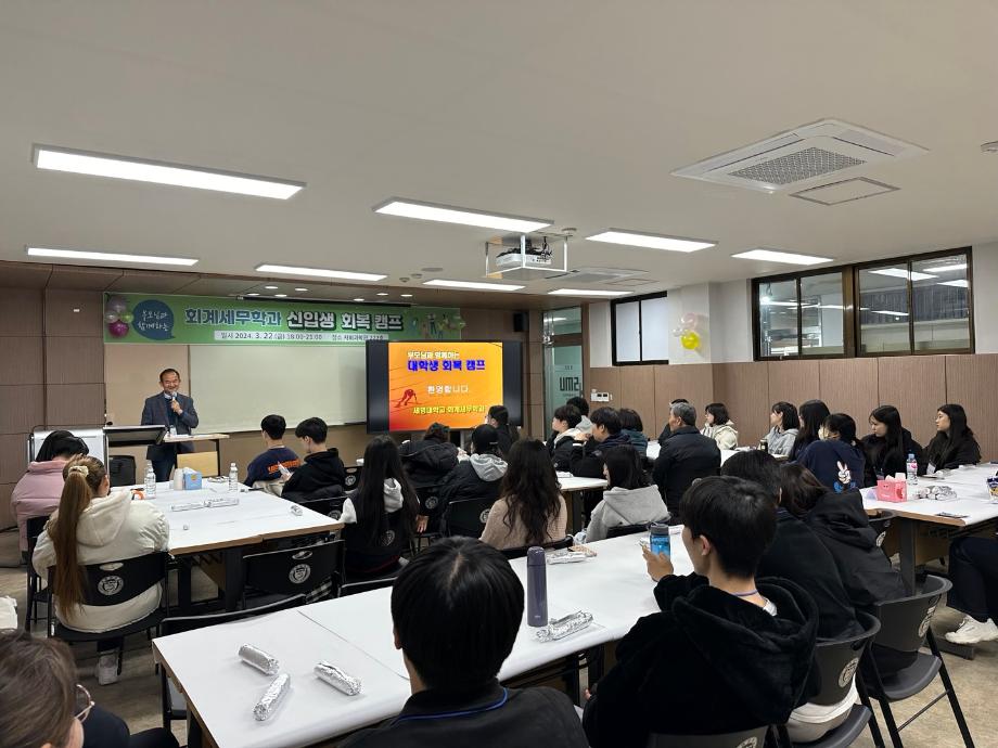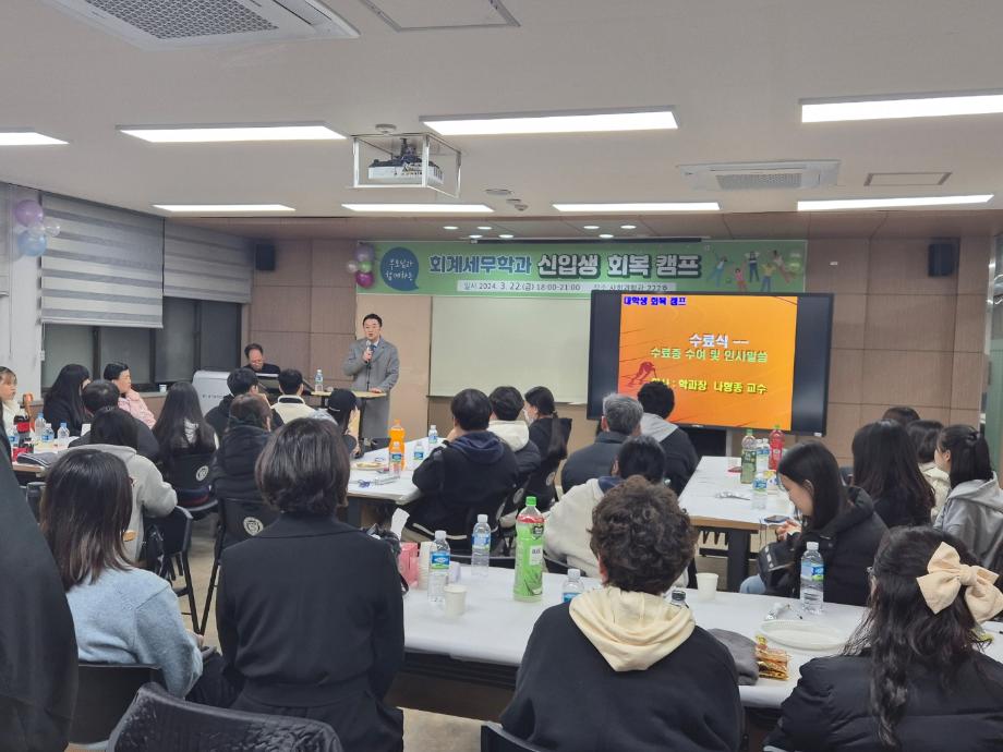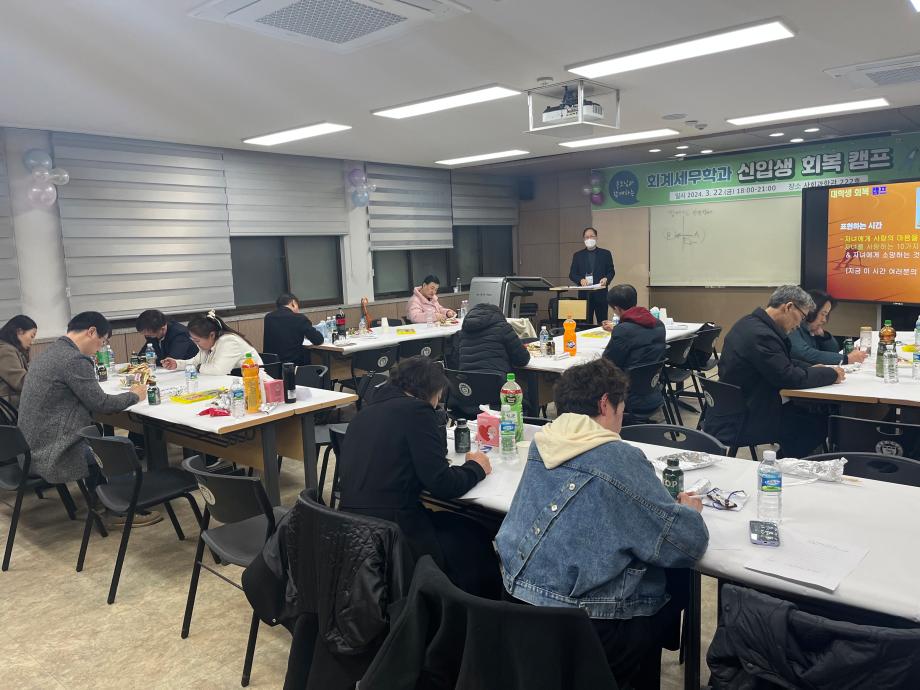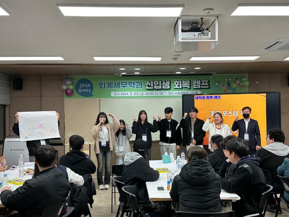 본문 시작 홈으로 학과소식 학과소개 취업정보 교육과정 학과소식 홈페이지가이드 학과행사 공지사항 포토갤러리 학과이야기 학과행사 학과행사 페이스북 트위터 프린트 2024학년도 회계세무학과 신입생 회복캠프 회계세무학과 1508 2024-03-28 2024년 3월 22일(금) 회계세무학과 신입생 회복캠프 목록 이전2024학년도 회계세무학과 신입생 환영회 다음 세명대학교 회계학과 졸업생 방문 만족도조사 만족도 조사 이 페이지에서 제공하는 정보에 대하여 만족하시나요? 매우만족 만족 보통 불만족 매우불만족