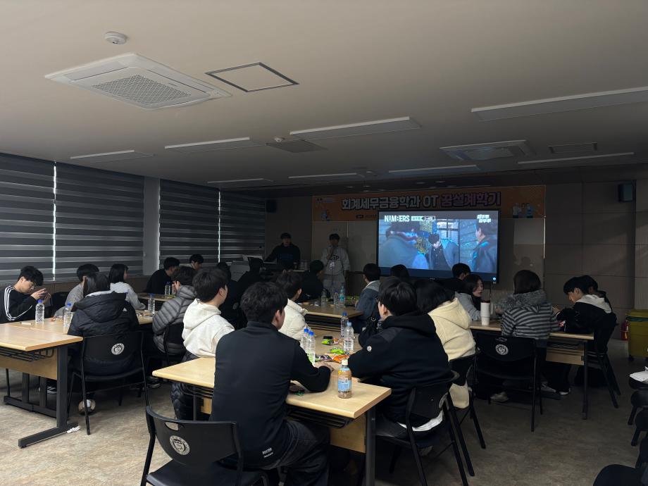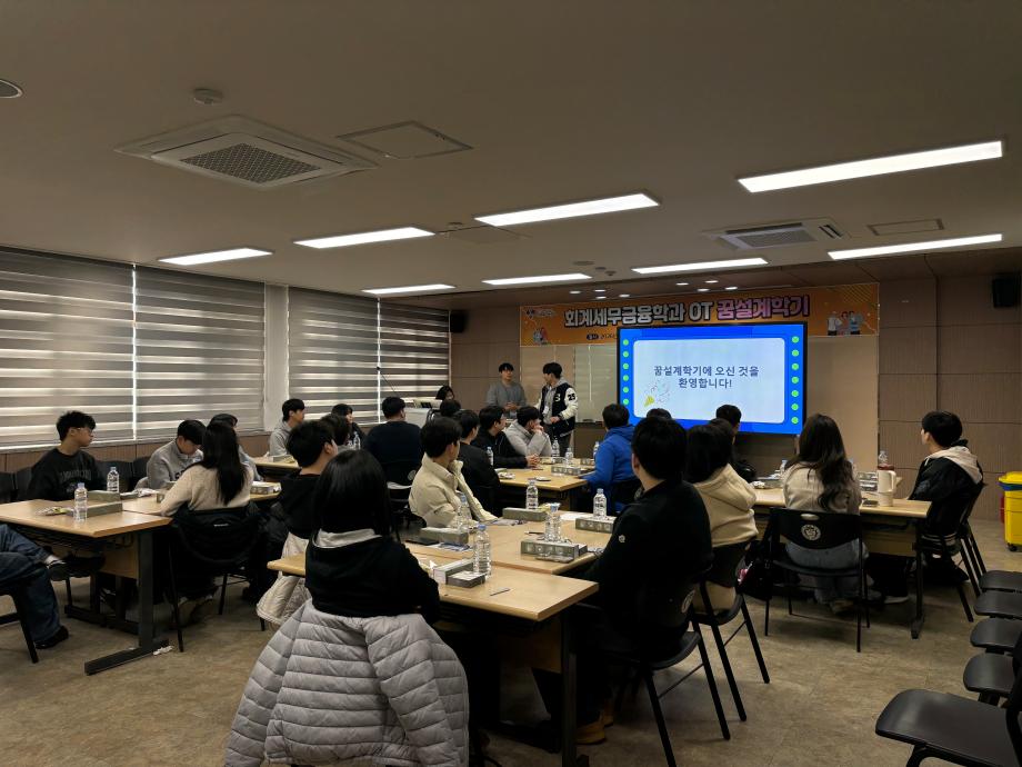 본문 시작 홈으로 학과소식 학과소개 취업정보 교육과정 학과소식 홈페이지가이드 학과행사 공지사항 포토갤러리 학과이야기 학과행사 학과행사 페이스북 트위터 프린트 2026 회계세무금융학과 꿈설계학기 회계세무금융학과 93 2026-02-26 2026.02.23(월)~2026.02.25(수) 회계세무금융학과 꿈설계학기를 진행하였습니다! 회계세무금융학과 학생분들 입학을 축하드립니다❤️ 목록 이전2025학년도 2학기 기말고사 간식사업 다음 회계세무금융학과 개강파티 만족도조사 만족도 조사 이 페이지에서 제공하는 정보에 대하여 만족하시나요? 매우만족 만족 보통 불만족 매우불만족